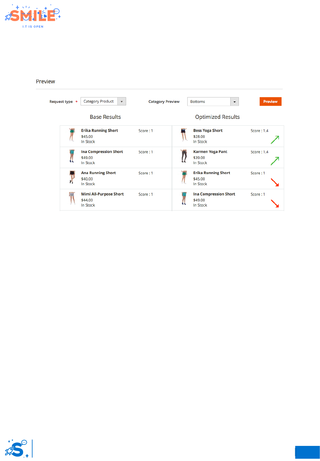 You can use the Preview tab to see how the optimizer changes the ranking of products