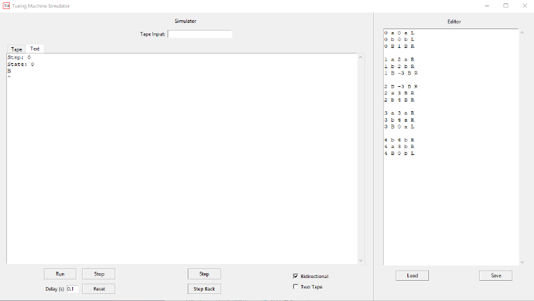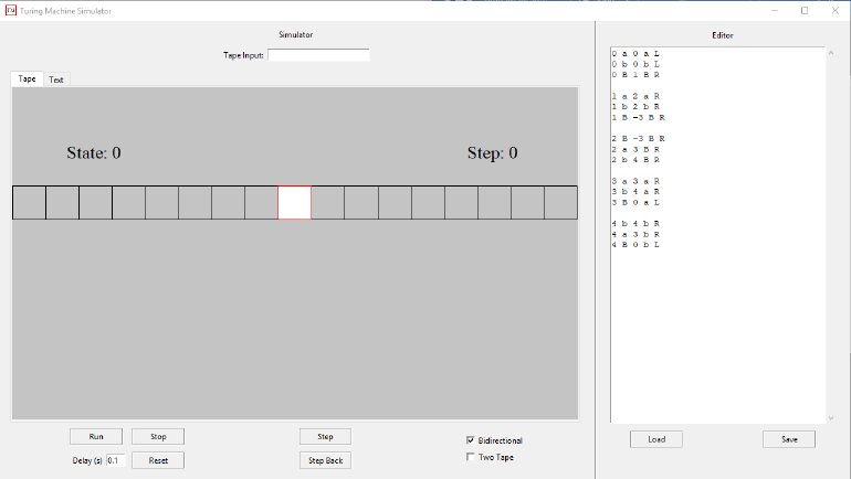 This Turing Machine simulator provides all the functionality of a bidirec-