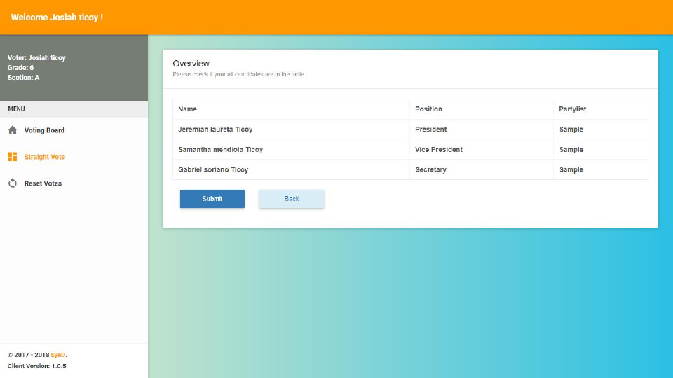 Sample preview of the students with their party list.