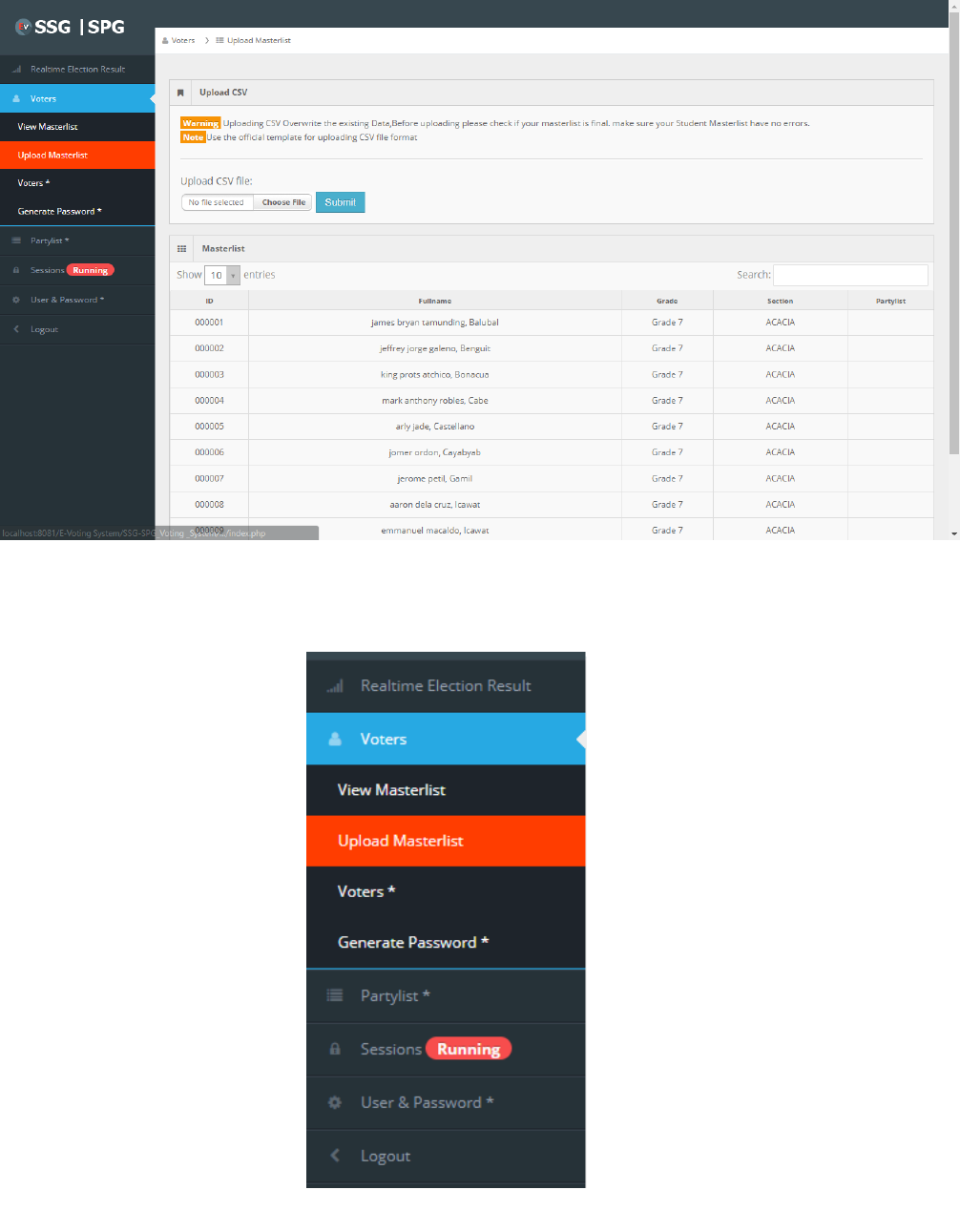 Voters Section (Upload Master List)