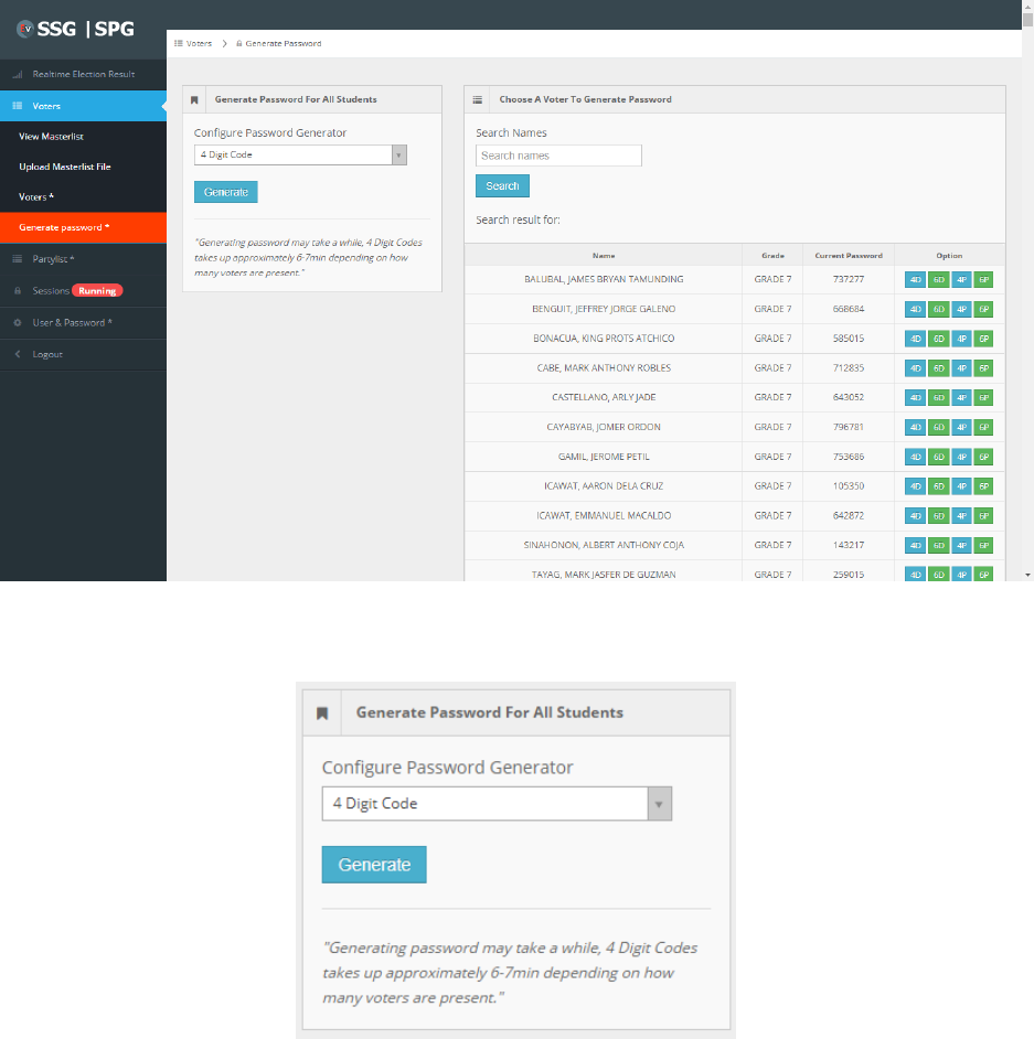 Voters Section (Generate password*)