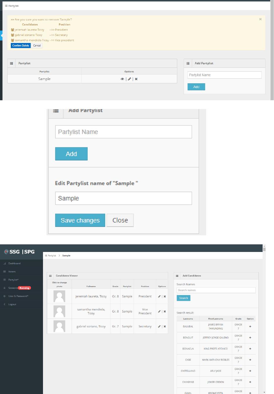 Add, Edit, Remove Partylist