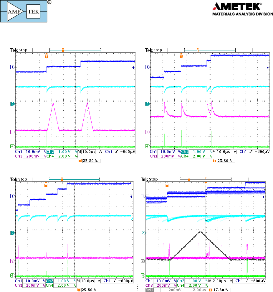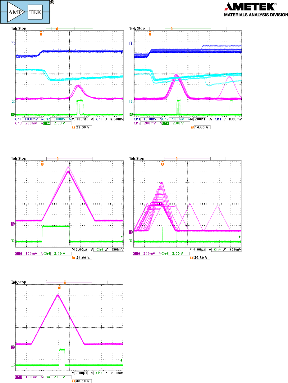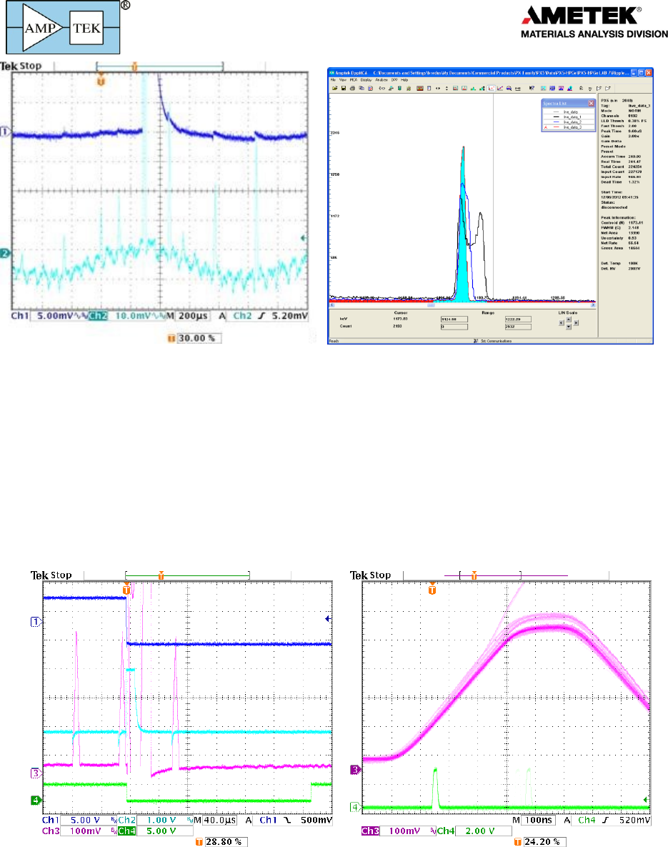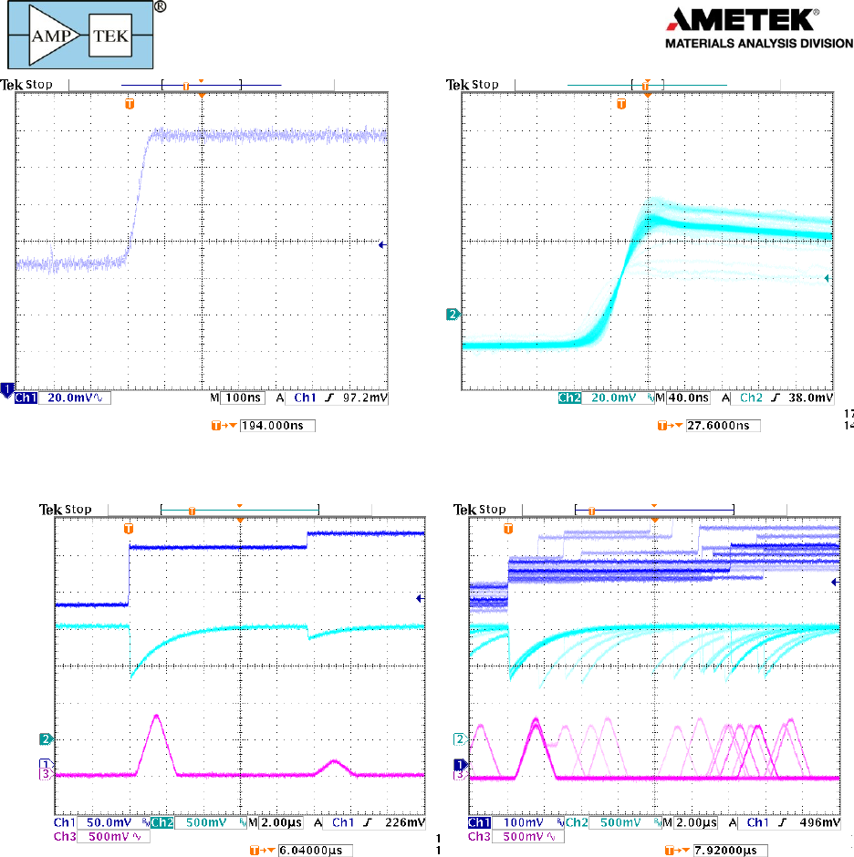 Preamplifier outputs. These traces illustrate typical output pulses with Amptek’s X-ray detectors, which use reset preamps.
