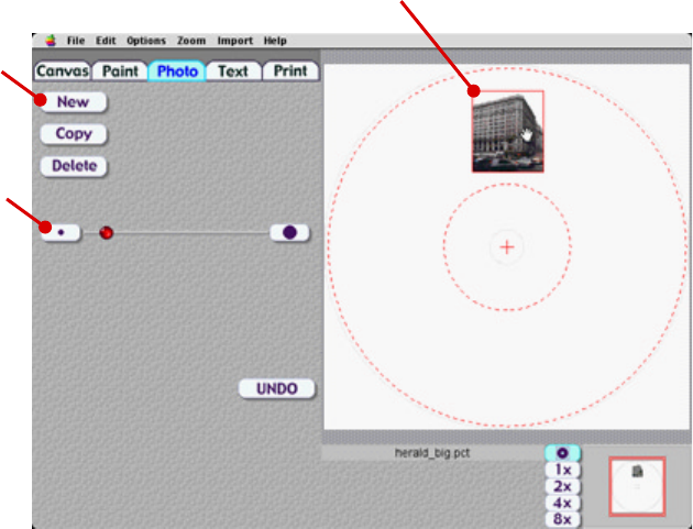 the scaling factor of the photograph with the slider to the left.