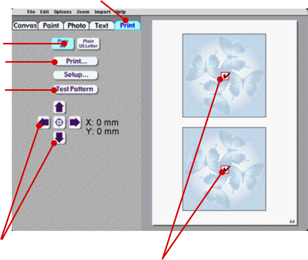 Click on arrow buttons to nudge printout