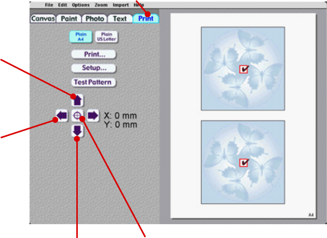 the Print button. Use the four arrows at the bottom to nudge the