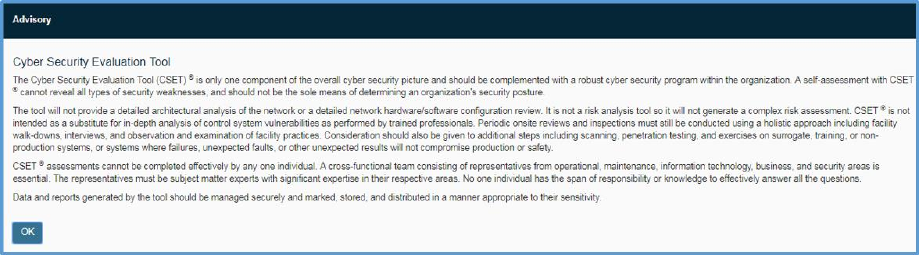 The Cyber Security Evaluation Tool (CSET®), Version 9.0.