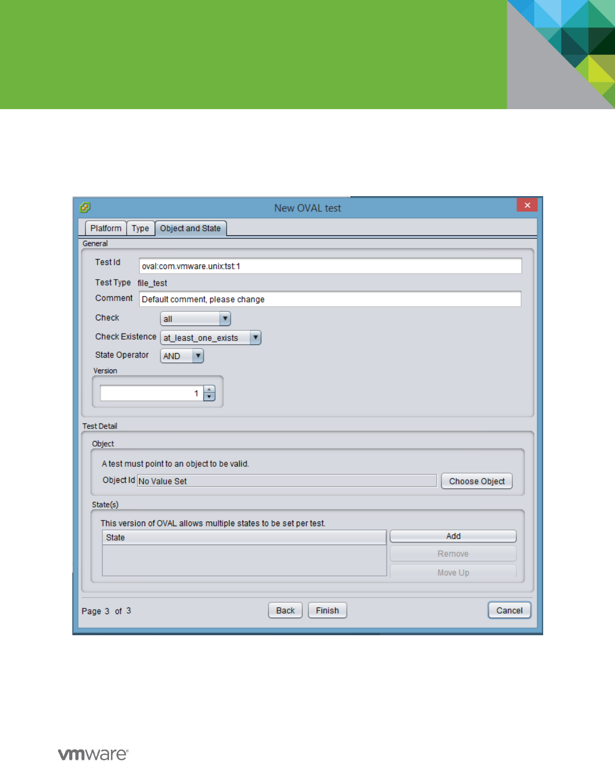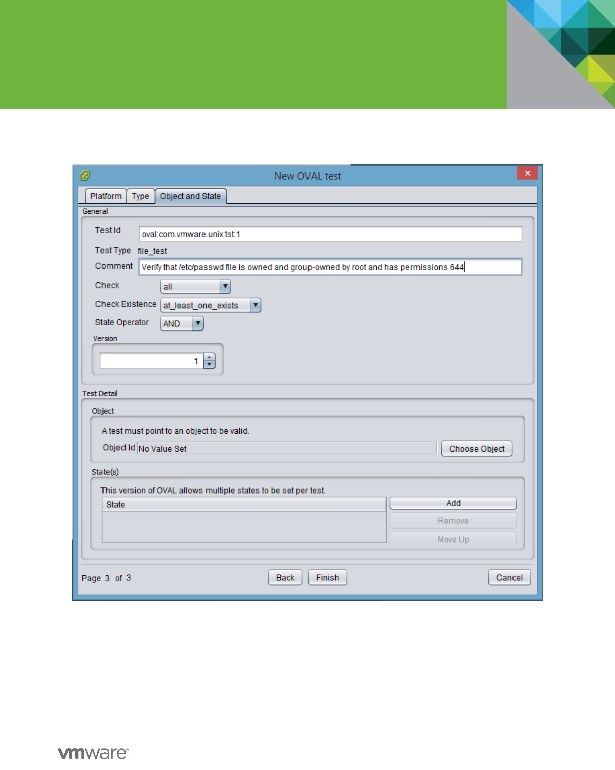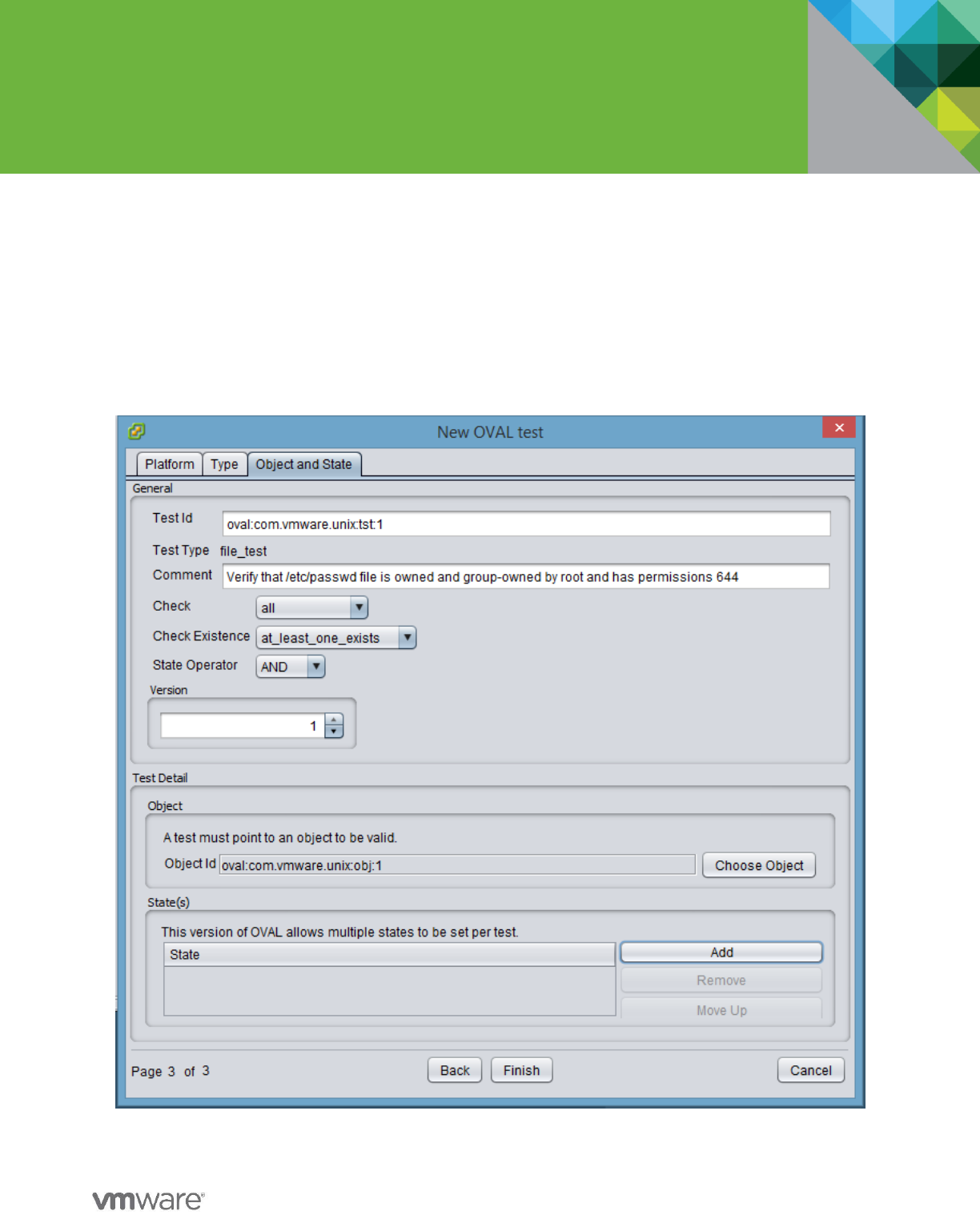 This adds a new OVAL definition. Now, we will link this definition with a test. Definitions