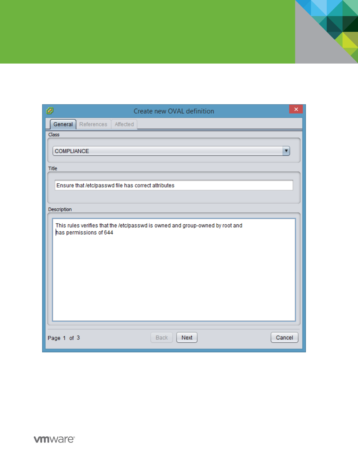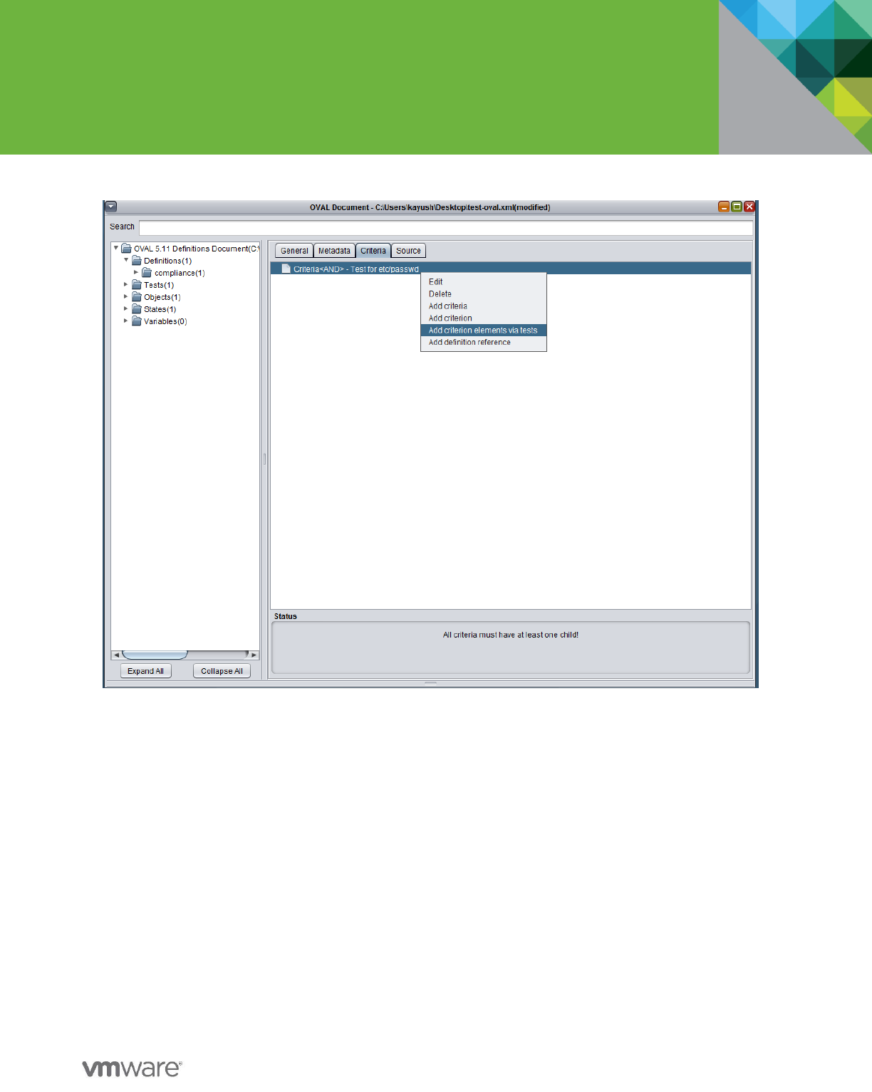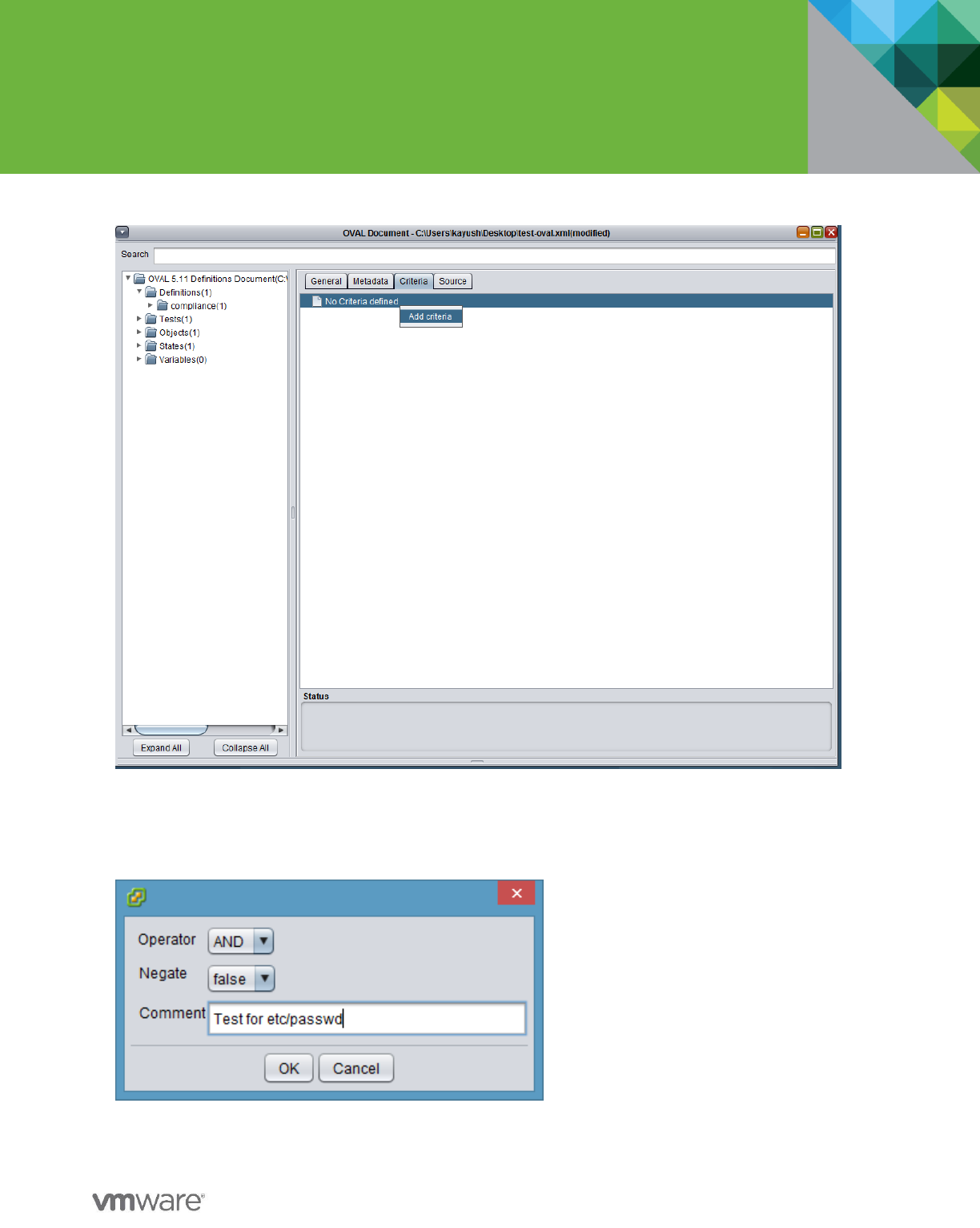 for this example, let us walk through a typical flow in creating an OVAL definition.