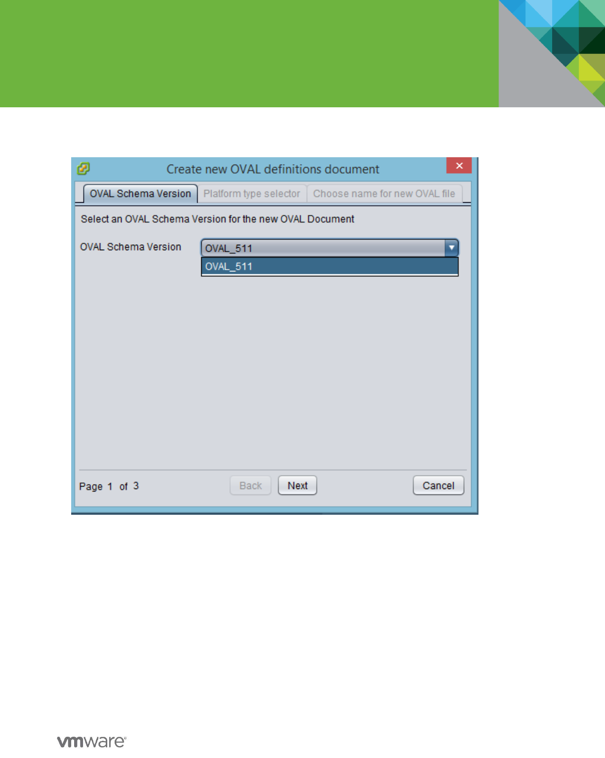 This opens a new dialog box with default OVAL 5.11 schema chosen. We have removed