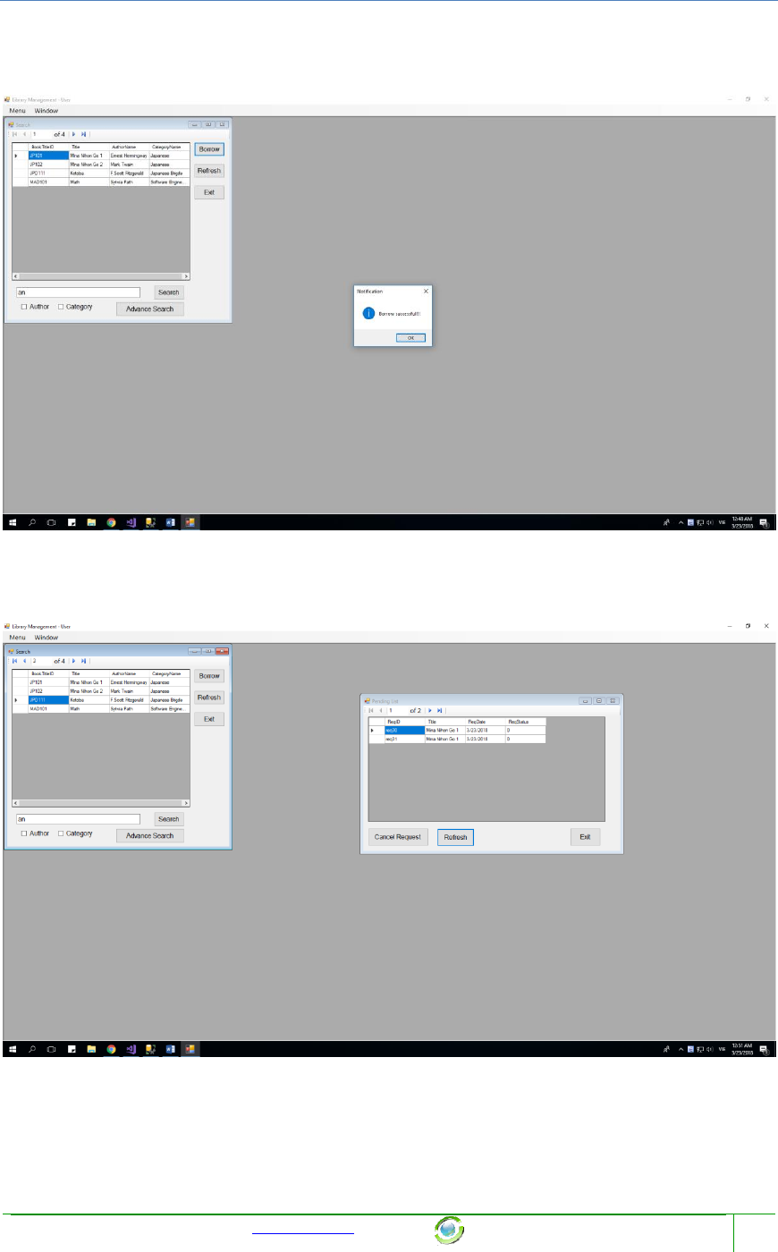 1) Search Book to Borrow and all of its functions which a User can do with it.