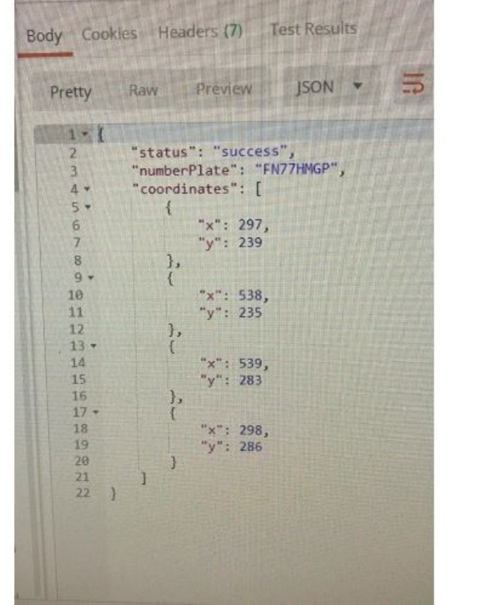 Figure 5: Number plate character recognition and number plate coordinates in