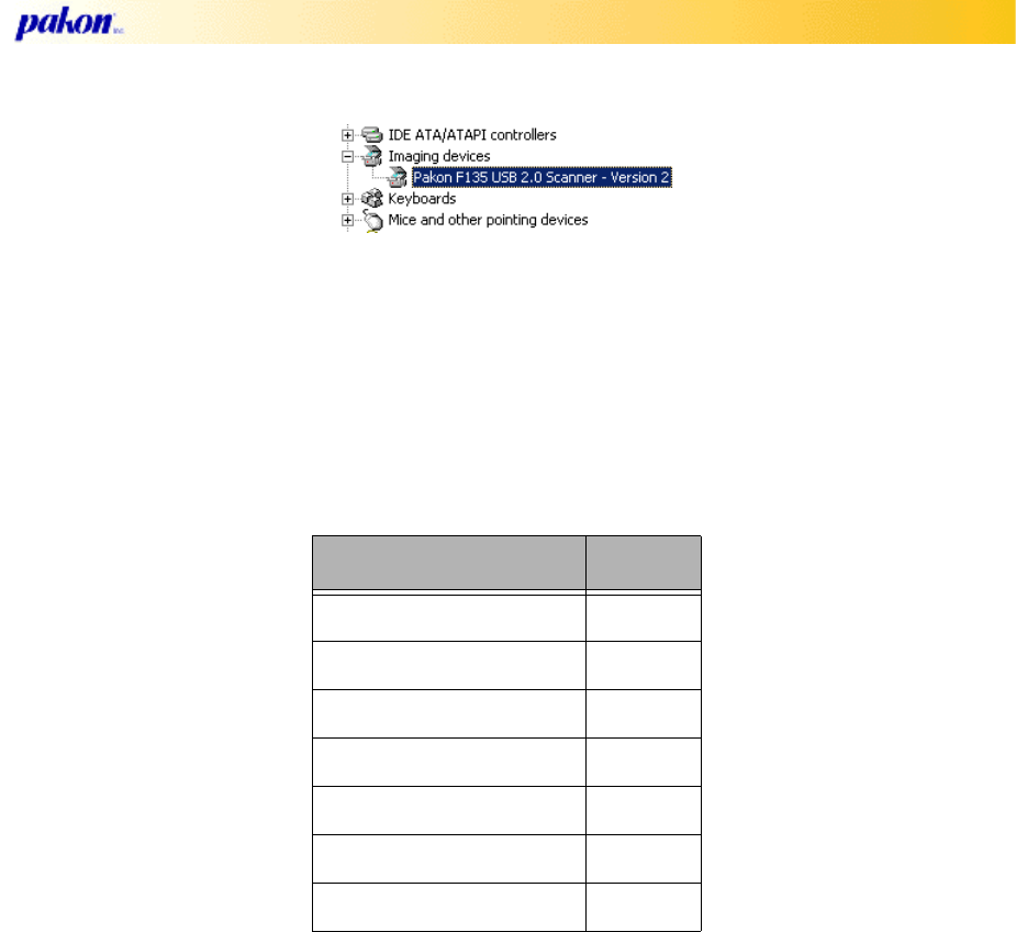 viewing the scanner properties in the Device Manager under the heading, “Imaging Devices.”