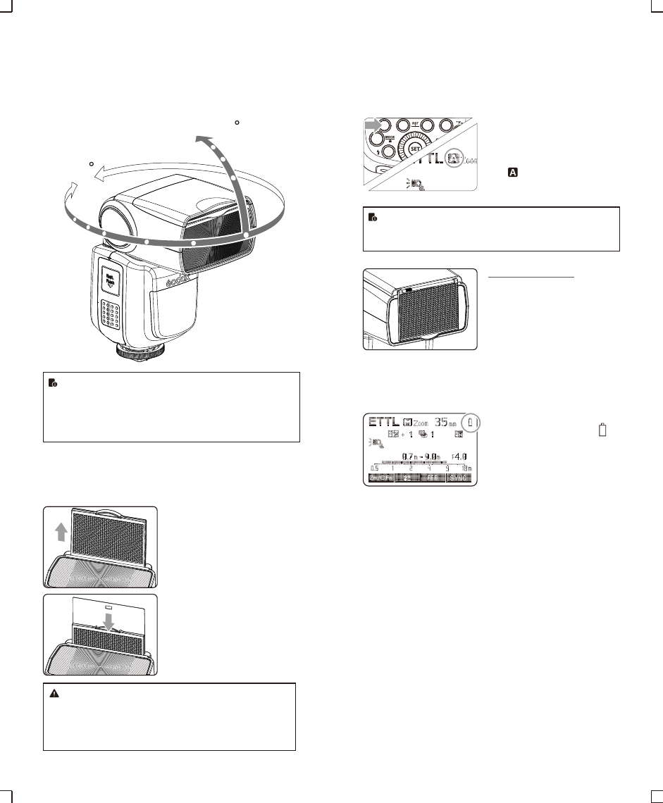 ● After 60 minutes (or 30 minutes) of idle operation, the flash unit