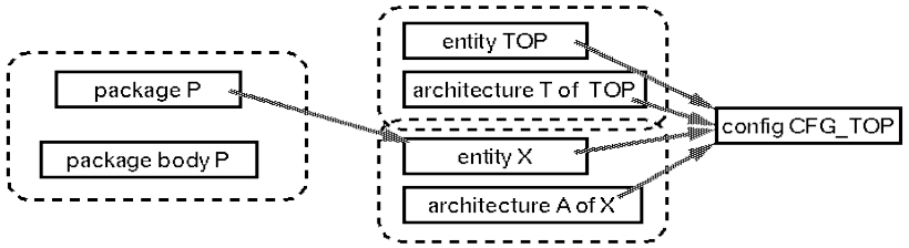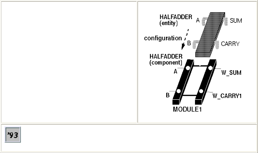 - Örnek, yapısal mimari için varsayılan konfigürasyonu göstermektedir. Bazı simülatörler bu tip en üst seviye varlıklar için kesin konfigürasyon tanımlamalarına ihtiyaç duymaktadır. Bir konfigürasyon özel bir varlığı tercih eder,burada FULLADDER(tamtopl...