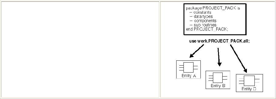 - Bir paket, veri tiplerinin, altprogramların, sabitlerin, vb tanımlamalardan oluşur. Bu takım çalışması için kullanışlıdır böylece herkes aynı veri tipleri,vb çalışacaktır. Bu farklı tasarımcıların modüllerinin bir araya getirilip VHDL model in oluştu...