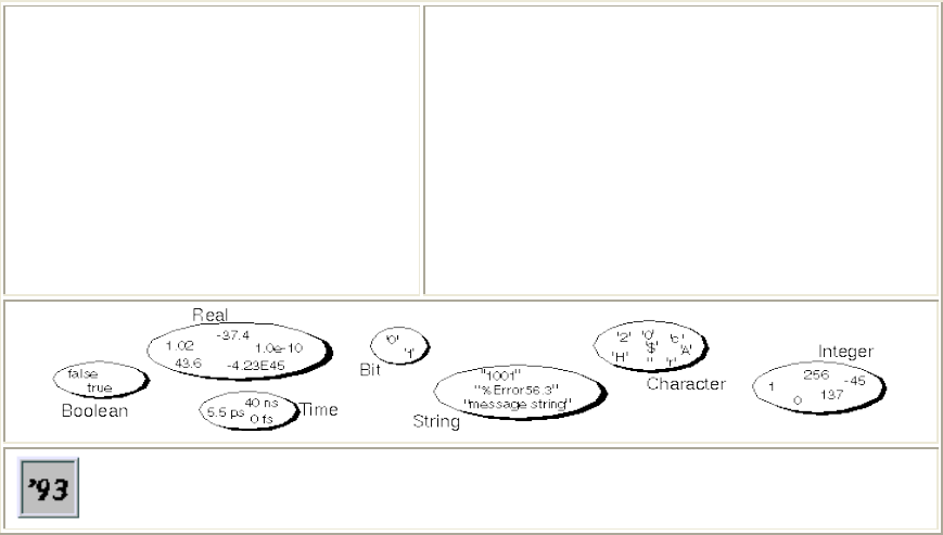- İsimlendirme kuralları, anahtar sözcükler küçük harfle yazılır, kullanıcı tanımlı tanıtıcılar ise büyük harflerle yazılır. Eğer bir şeye dikkat çekmek isteniyorsa koyu harflerle yazılır. Burada birçok kendini açıklayan ikon vardır. Bunlar VHDL'93 ...
