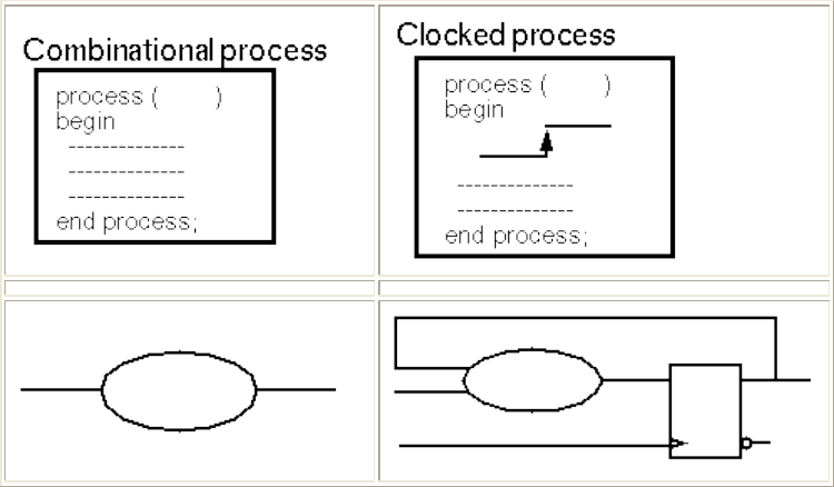 - VHDL’de fonksiyonel davranış sözde süreçler ile modellenir. RT seviyesi tanımlamalarında iki farklı tipte süreç bulunmaktadır: tamamen kombinasyonel süreç (combinational process) ve saatsel süreç(clocked process). Tüm saatsel süreçler Flip Floplar o...