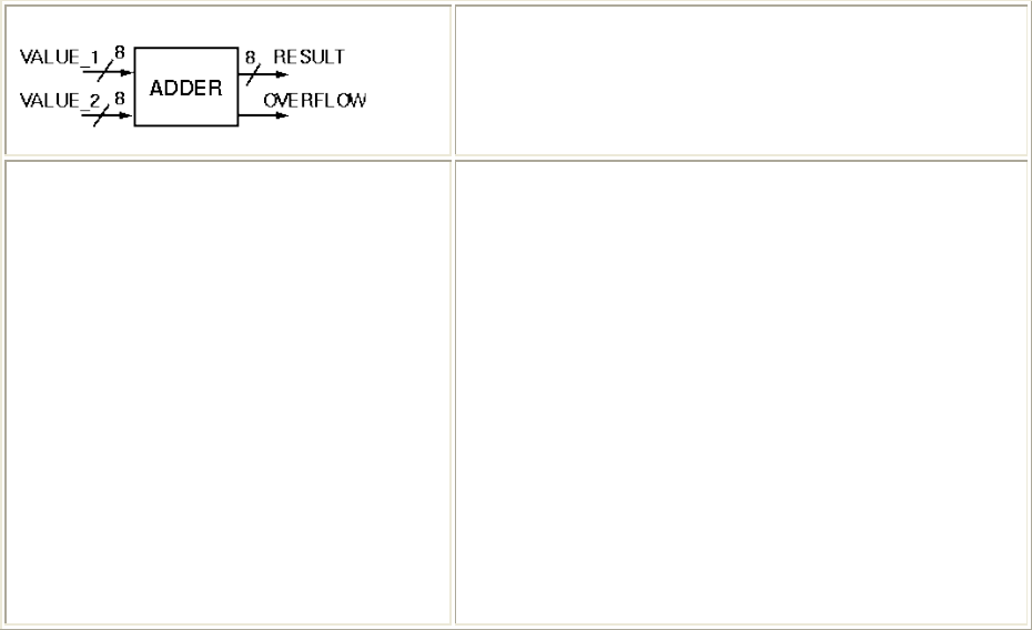 - Elemanların portları mimarinin sinyalleriyle, pozisyonları yardımıyla bağlantı kurulmuştur, ör. ilk sinyal ilk portla bağlantılıdır. HALFADDER(yarımtoplayıcı) varlığı kullanılamaz ancak bunun iki varlığı A ve B ‘nin RTL ve GATE diye farklı mimariler...