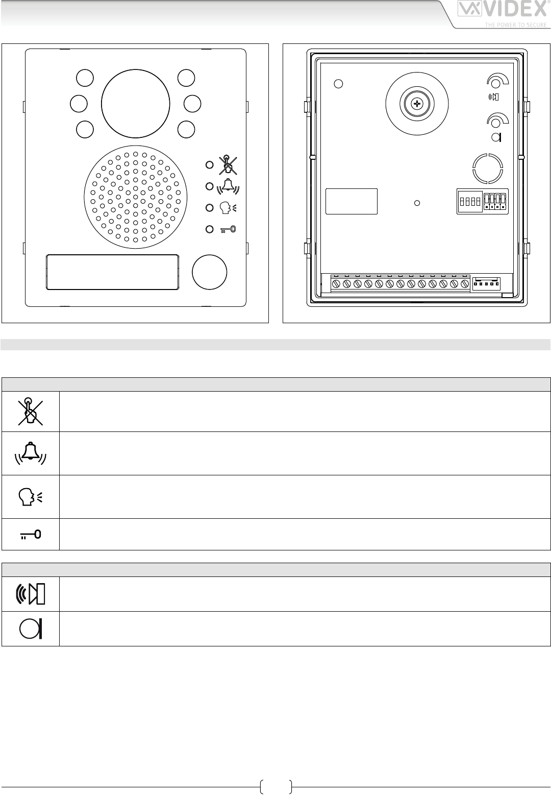 • Disability friendly, visual and acoustic signals from the door panel to inform the visitor of call status (call made, ringing, speak,
