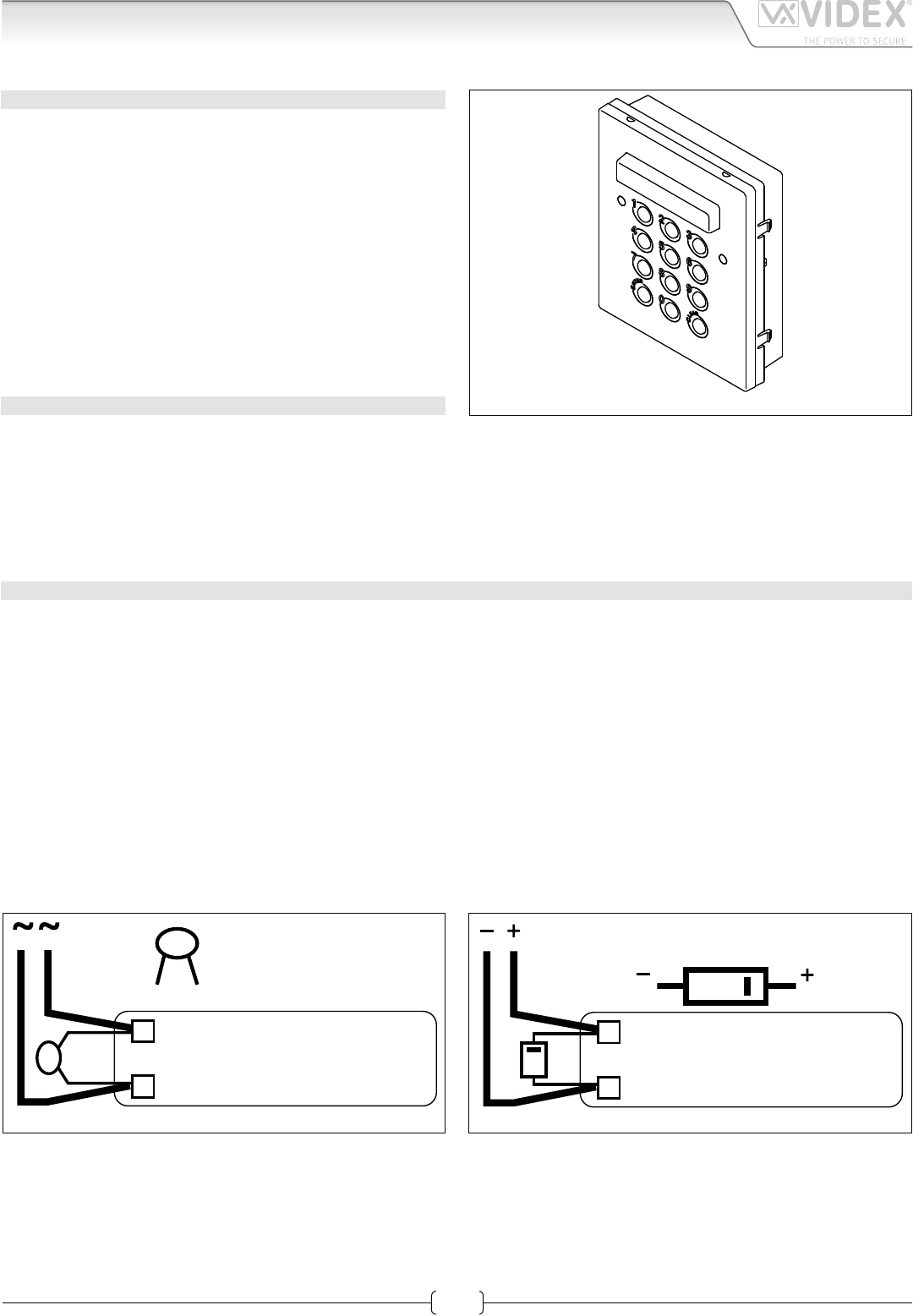• Two methods of operating the electric lock:- 1) Dry contact relay, 2) capacitor discharge 12Vdc output.