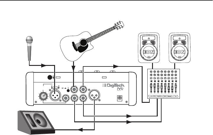 If you’re using a P.A. system or mixer, turn down the channel that the Vocalist® Live 2 is con-