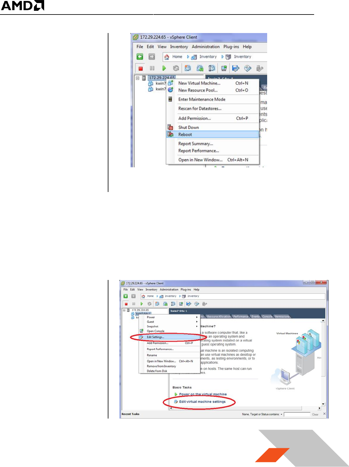 5. In vSphere client, reboot the server.