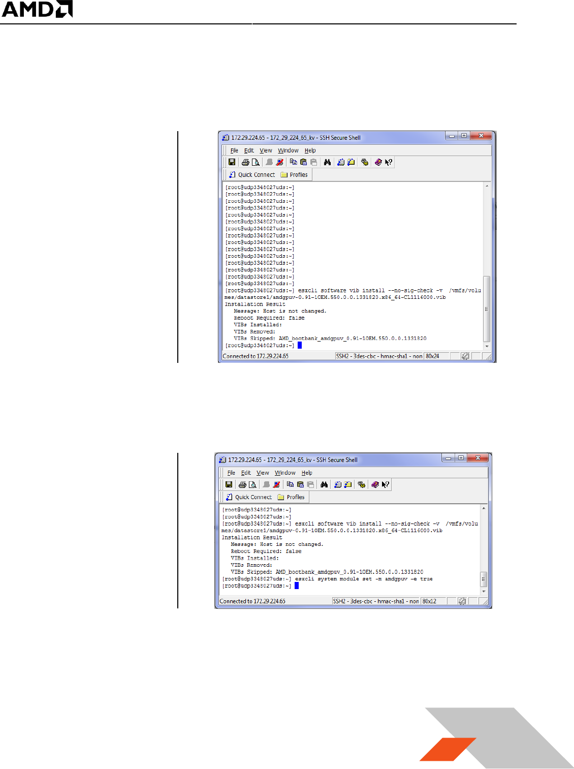 esxcli software vib install --no-sig-check -v /vmfs/volumes/datastore1/amdgpuv-<version>.vib