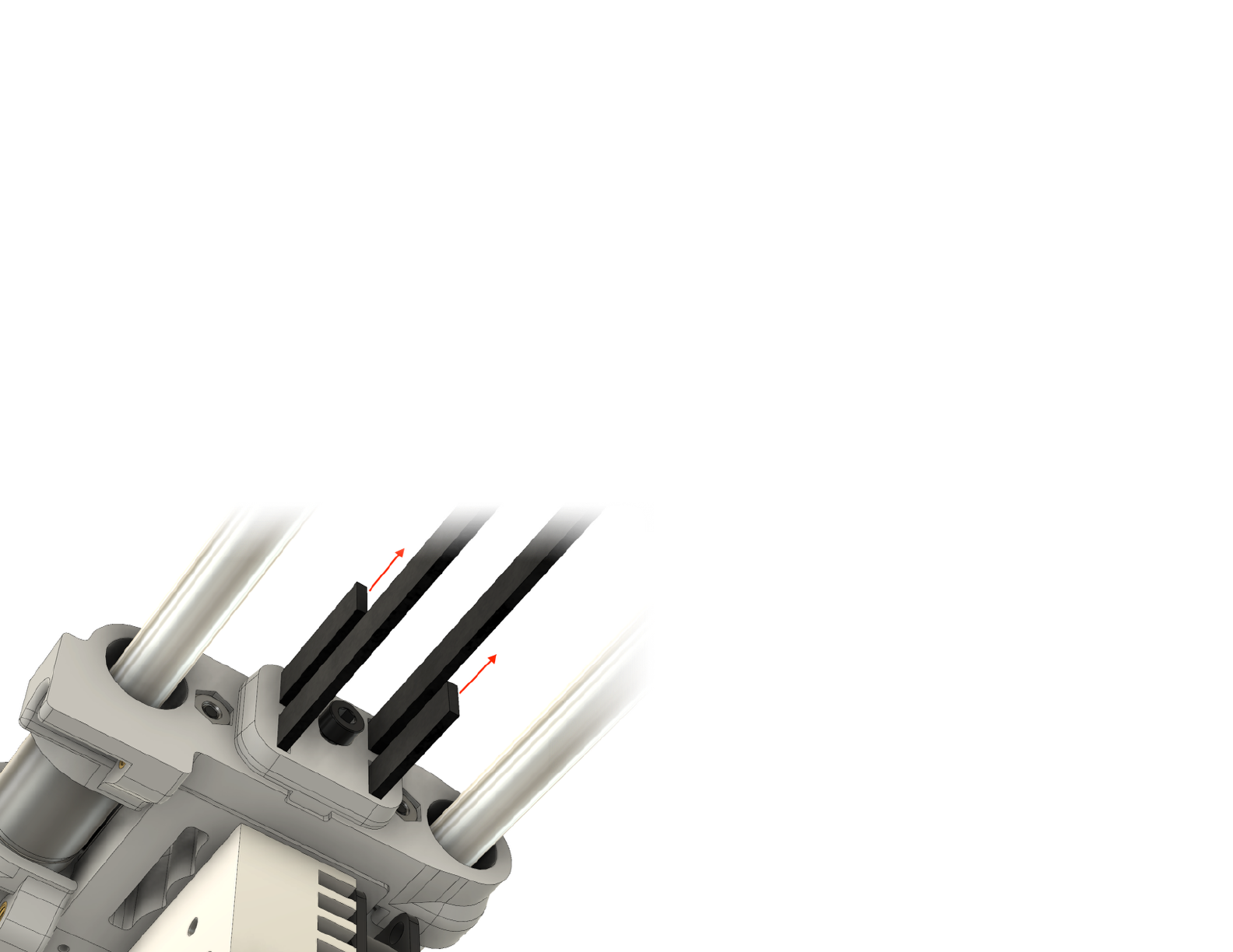 Step 12: Insert one end of the bowden PTFE tubes into each of the holes in the