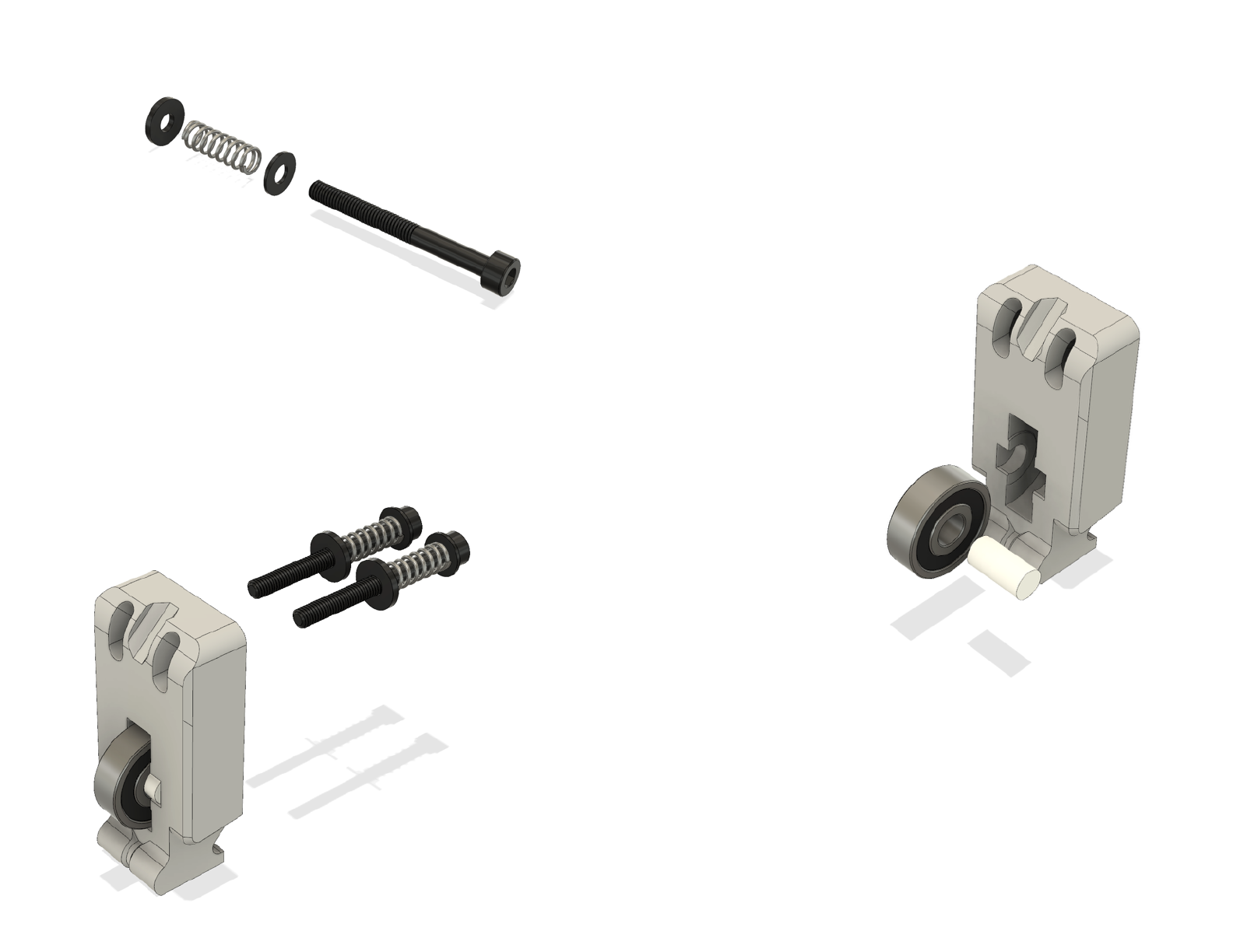 Step 2: Insert the M3 hex nuts into the bottom idler sections.