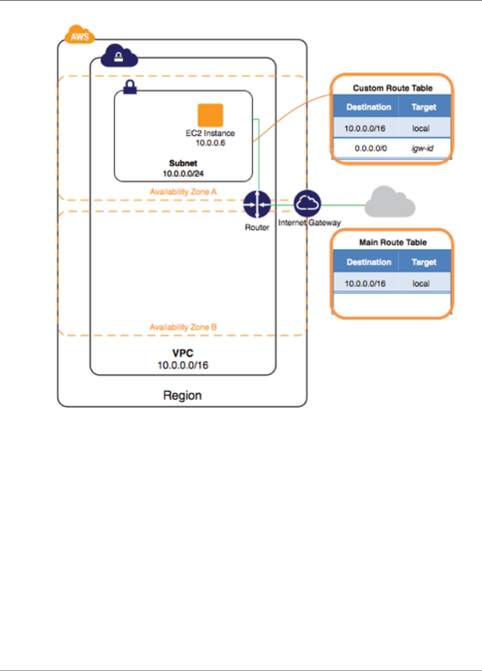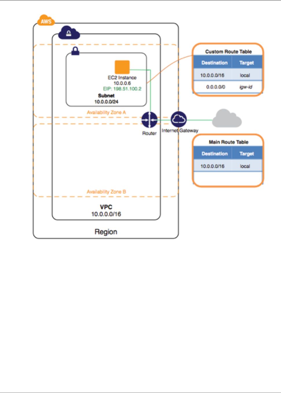 subnet and the Internet gateway. For more information about route tables, see Route Tables.