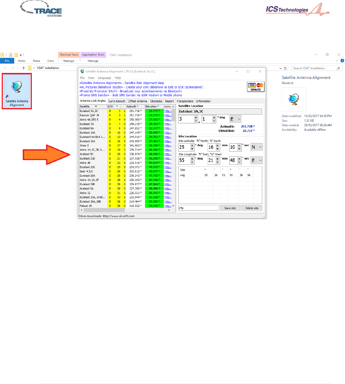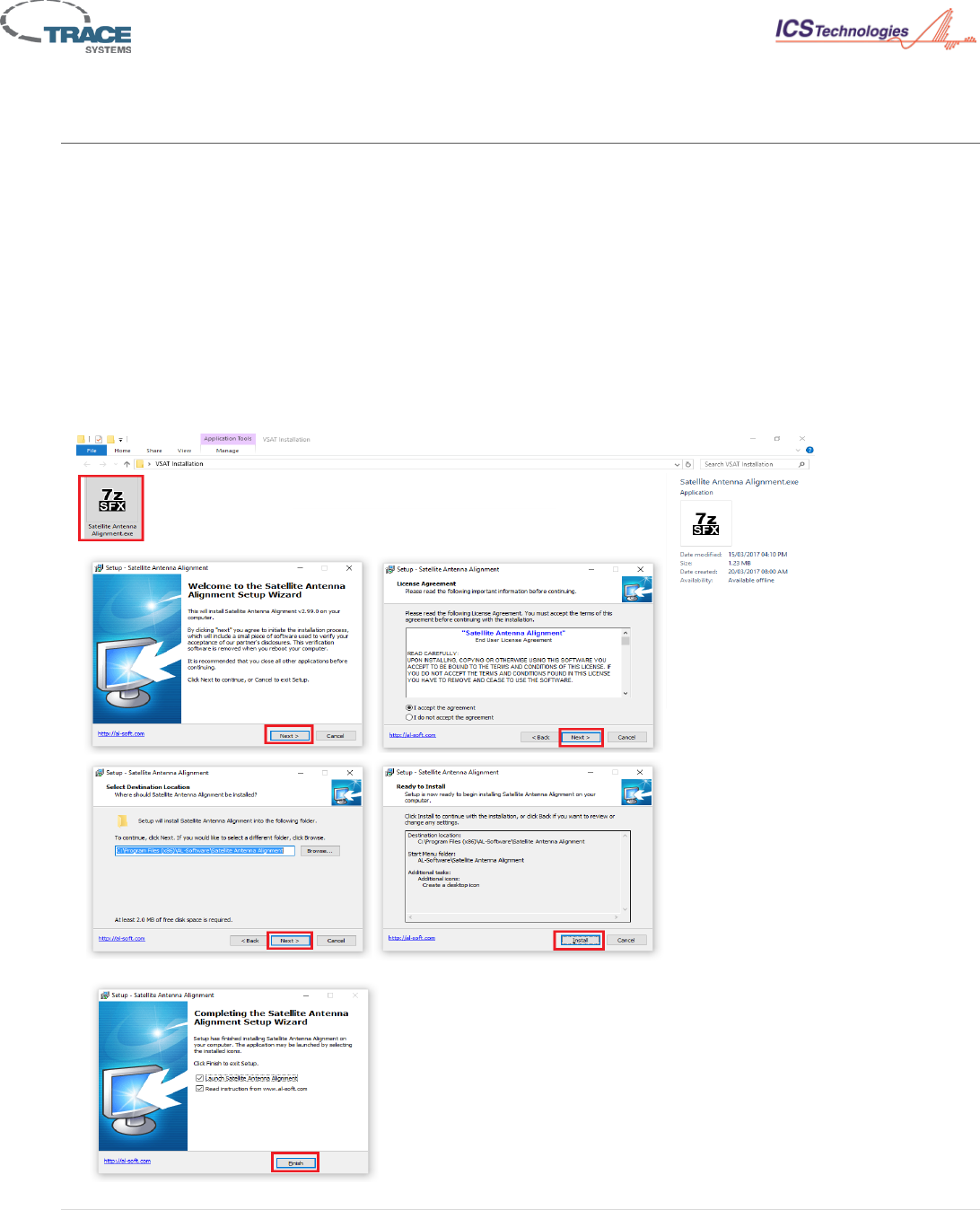 Install Satellite Antenna Alignment program and follow the wizard until installation is completed.