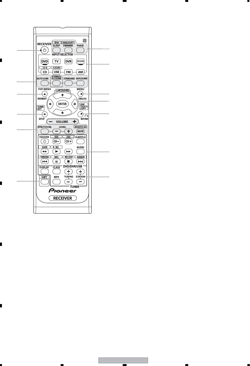 DVD/LD TV/SAT DVR/VCR VIDEO/FRONT AUDIO CD CD-R/TAPE/MD USB FM
