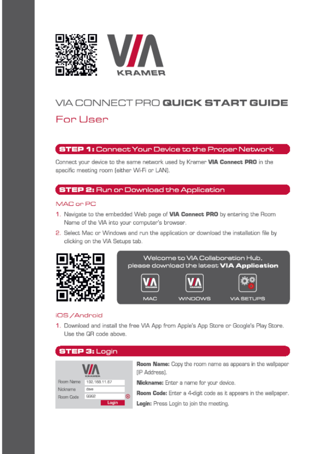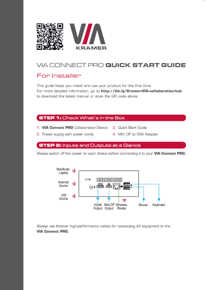 The VIA Connect PRO unit is pre-activated by Kramer.