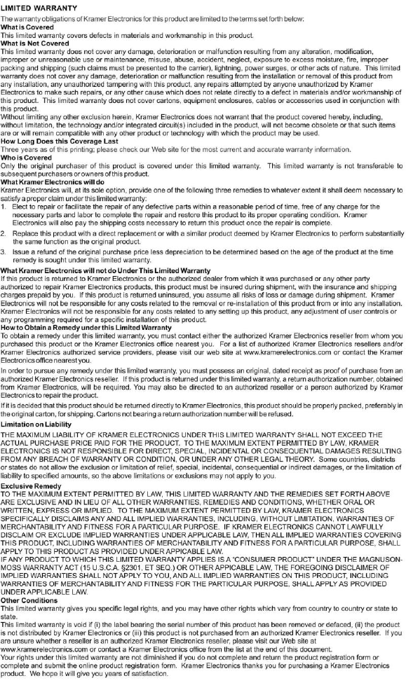 Specifications are subject to change without notice at http://www.kramerelectronics.com