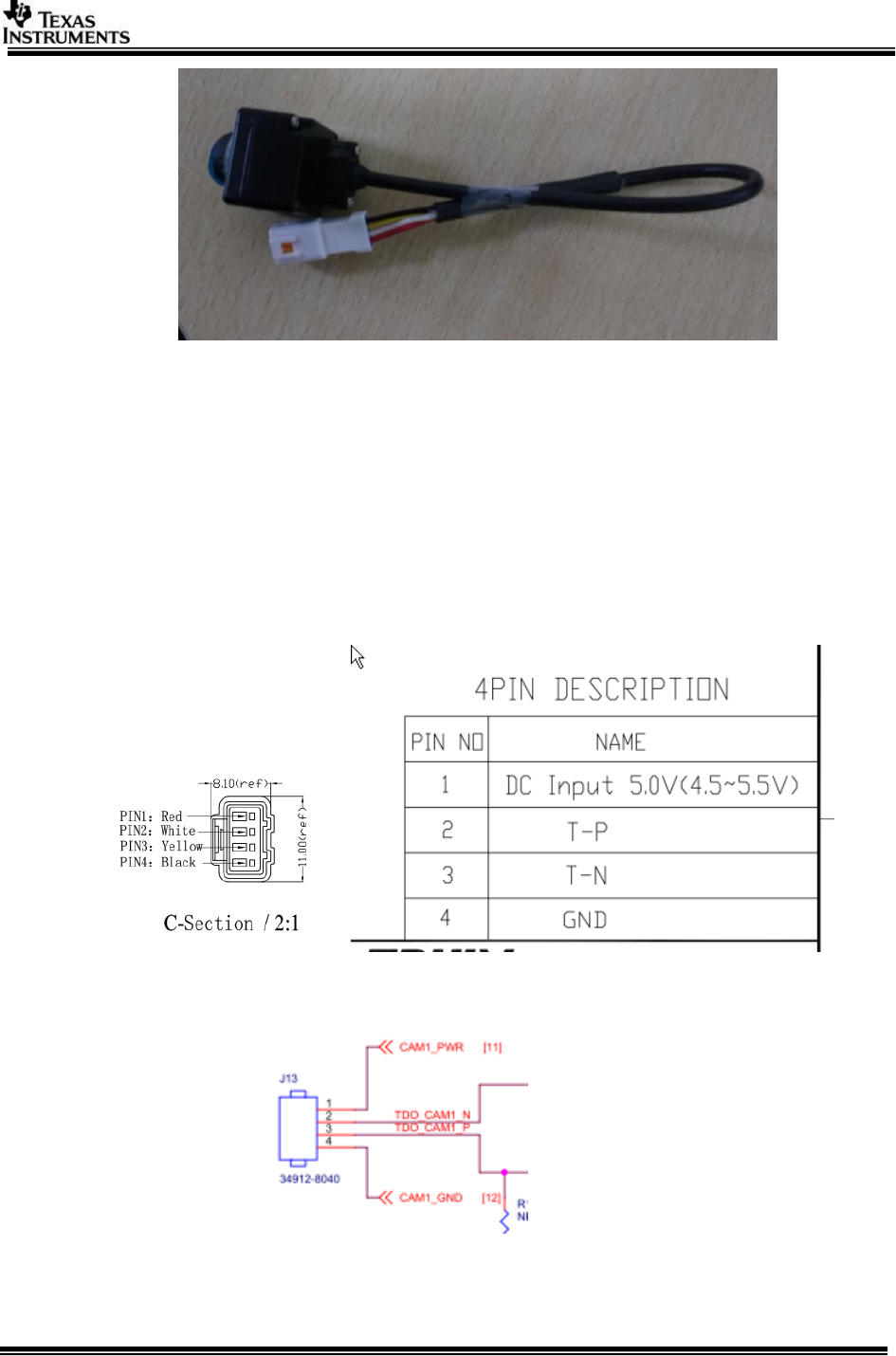 b. Pin connections for TrulyTM camera and TDA2Ex Eth SRV board