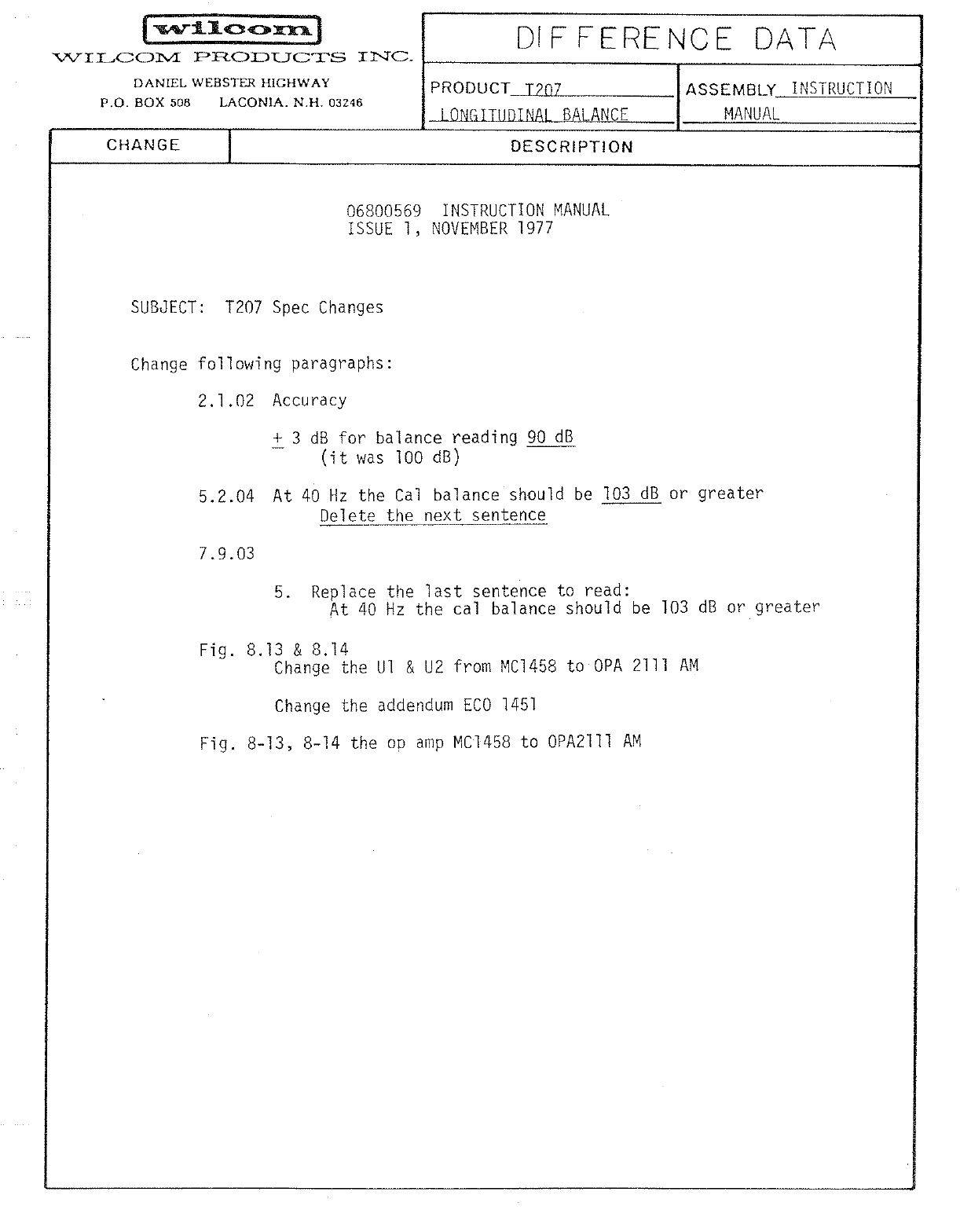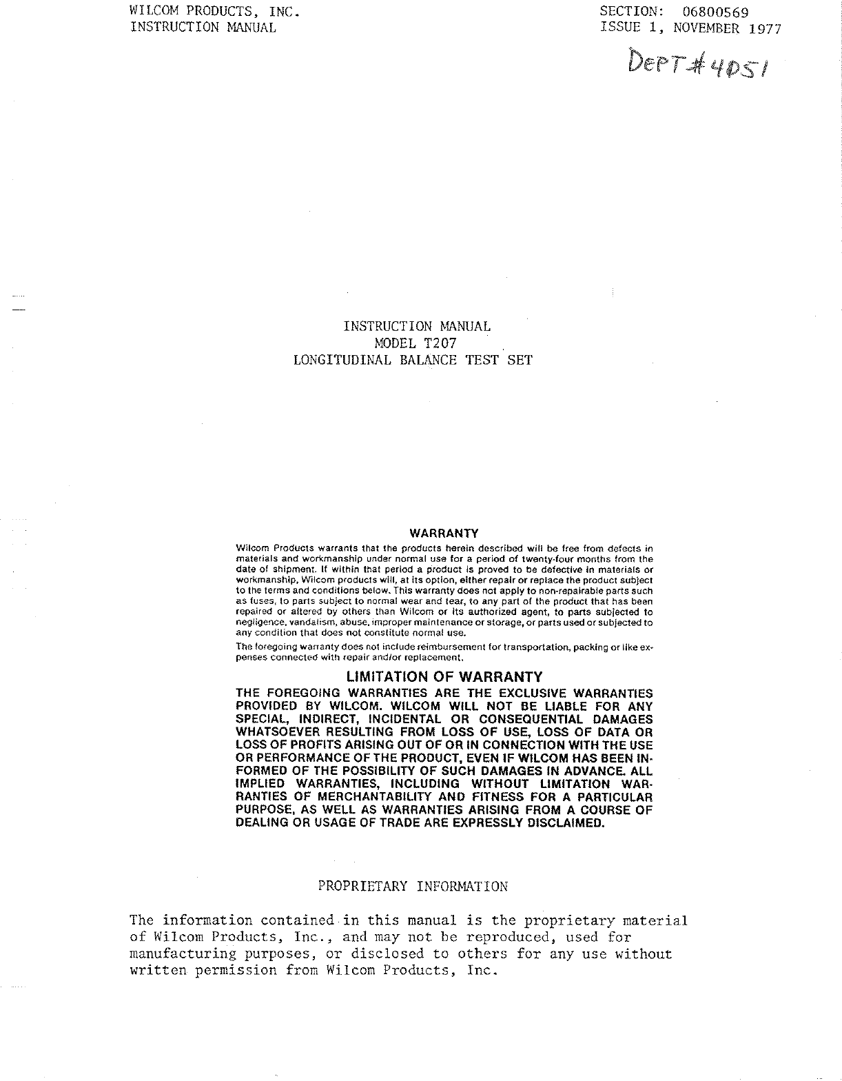 MISCELLANEOUS/WILCOM T207 Inst.Manual WILCOM