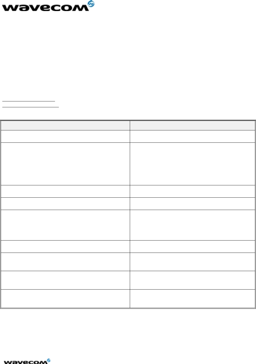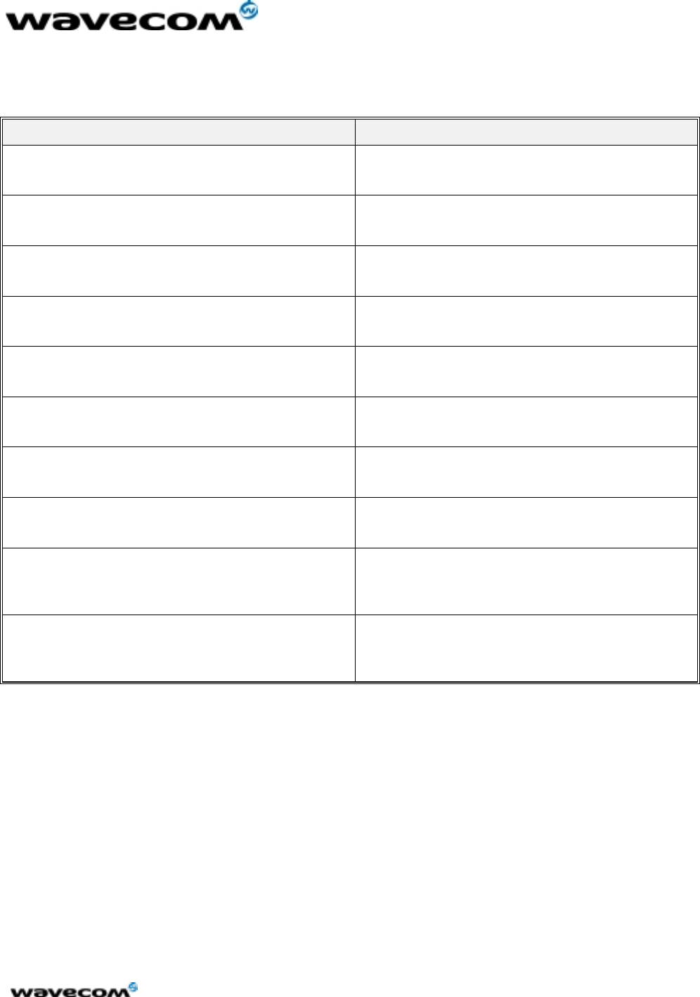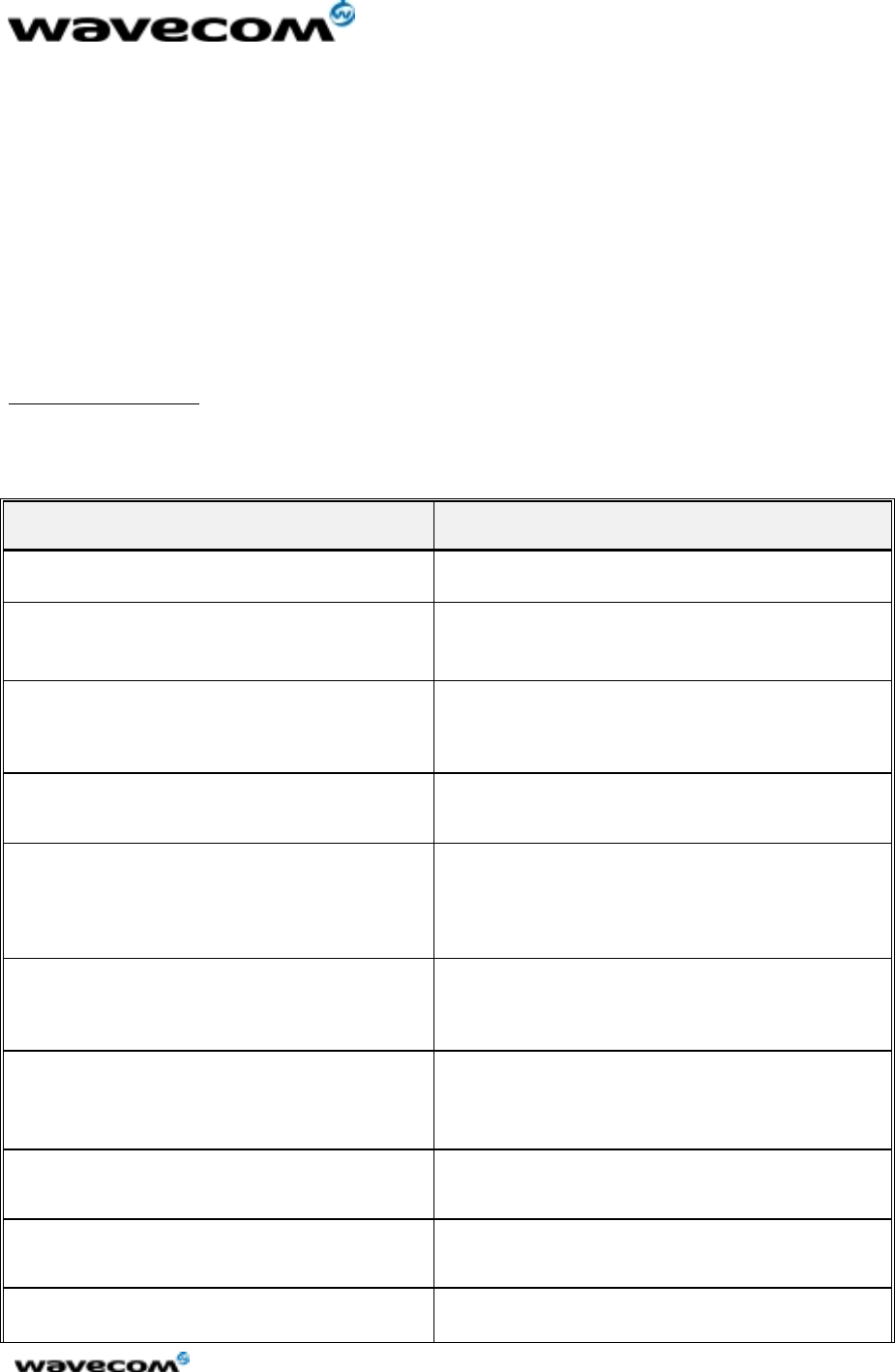This document is the sole and exclusive property of WAVECOM. Not to be distributed or divulged