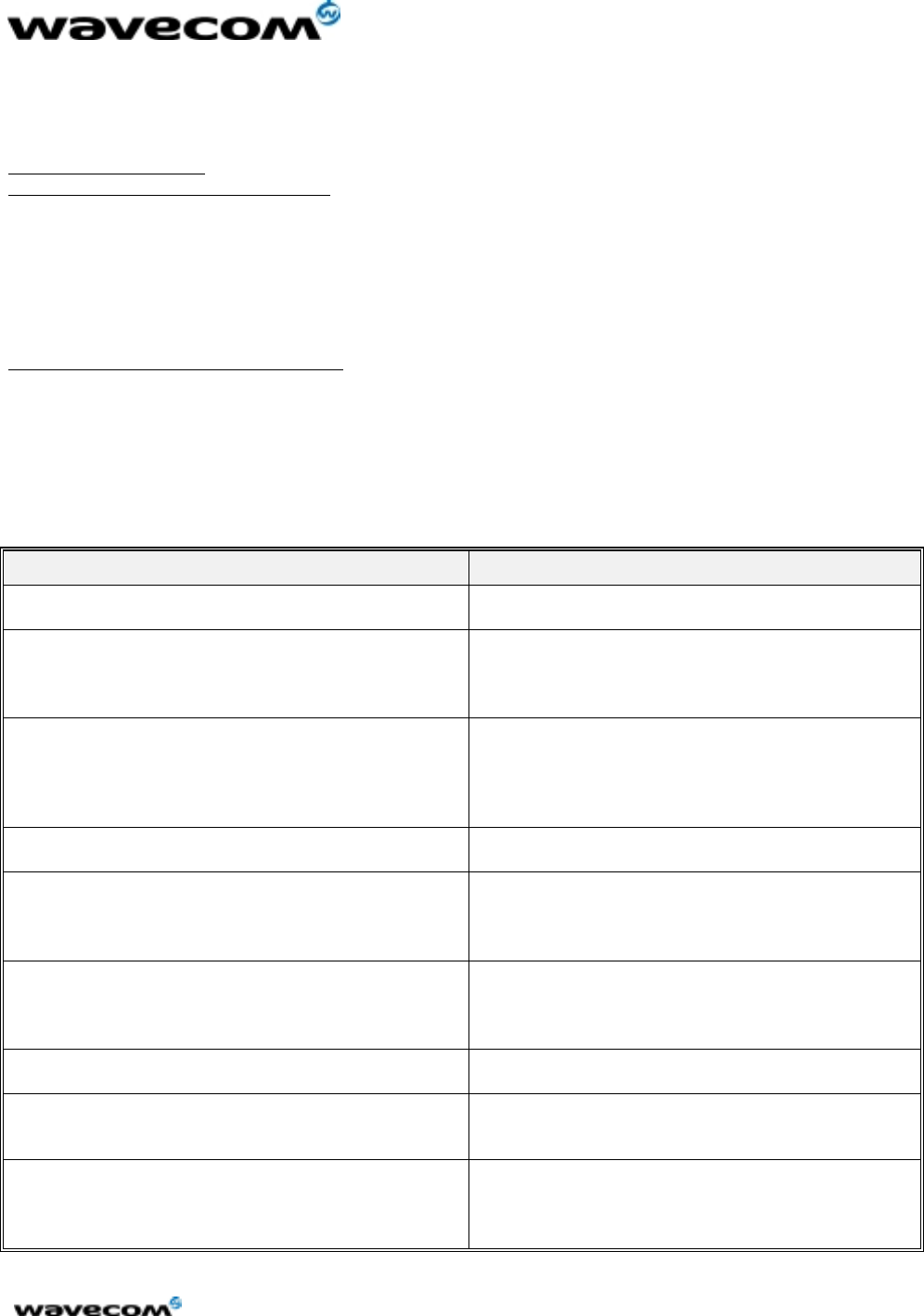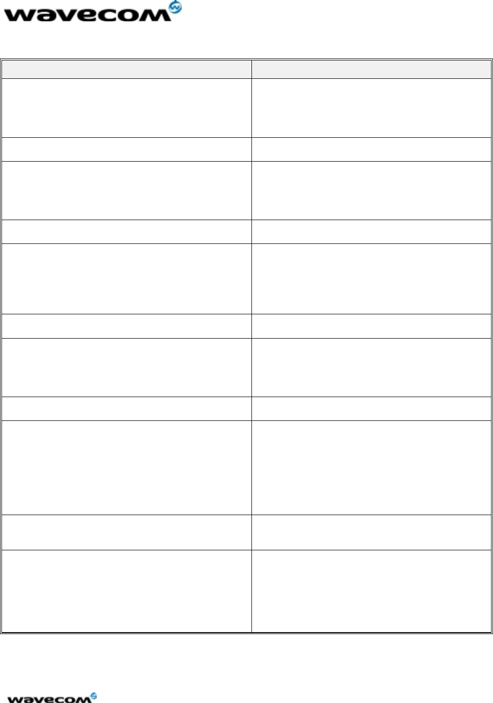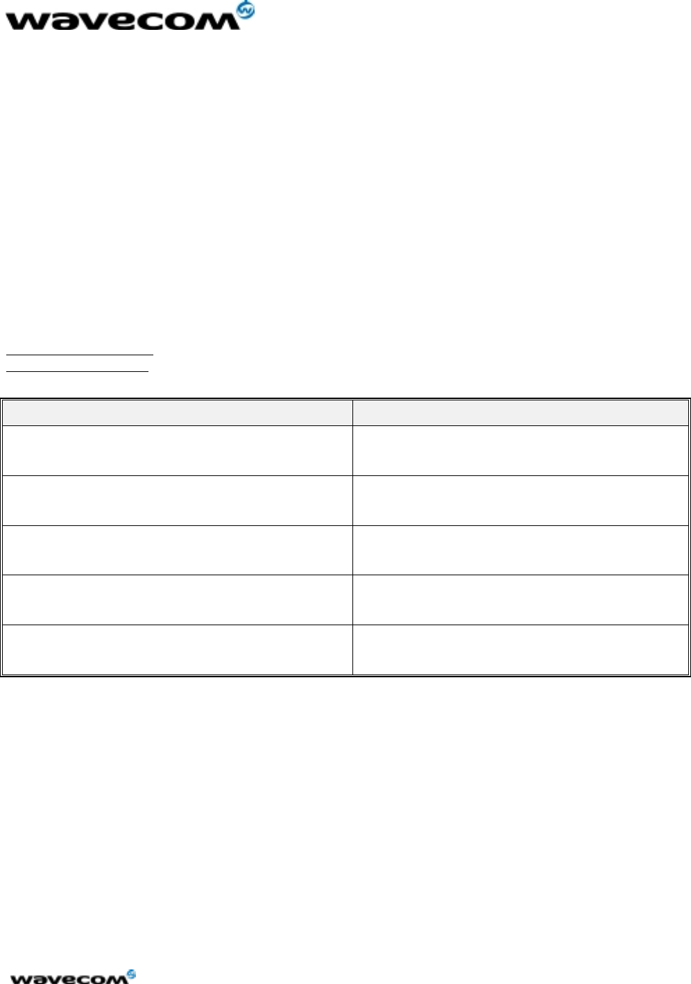 This document is the sole and exclusive property of WAVECOM. Not to be distributed or divulged
