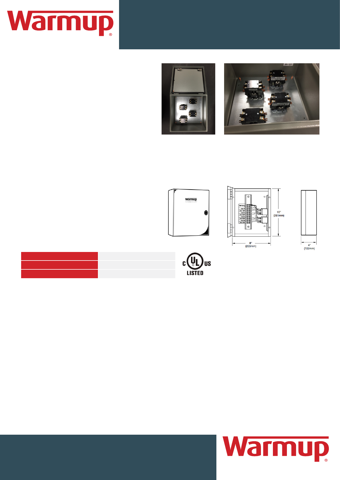 When combined with a Warmup indoor our outdoor controller, it allows for additional amperage to be switched by that