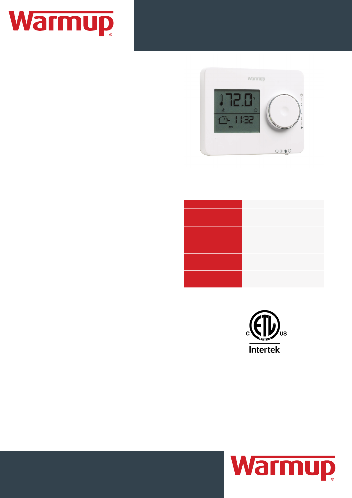 When installed according to the installation manual, the Tempo thermostats are covered with Warmup’s 3-Year manufacturer warranty.