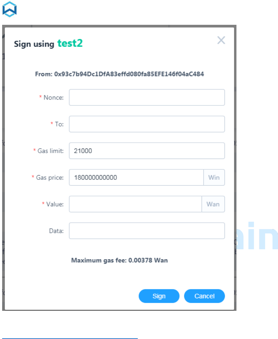 • Please notice that “Gas price” should not be lower than 180000000000 Win (180 Gwin,