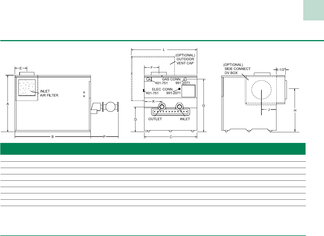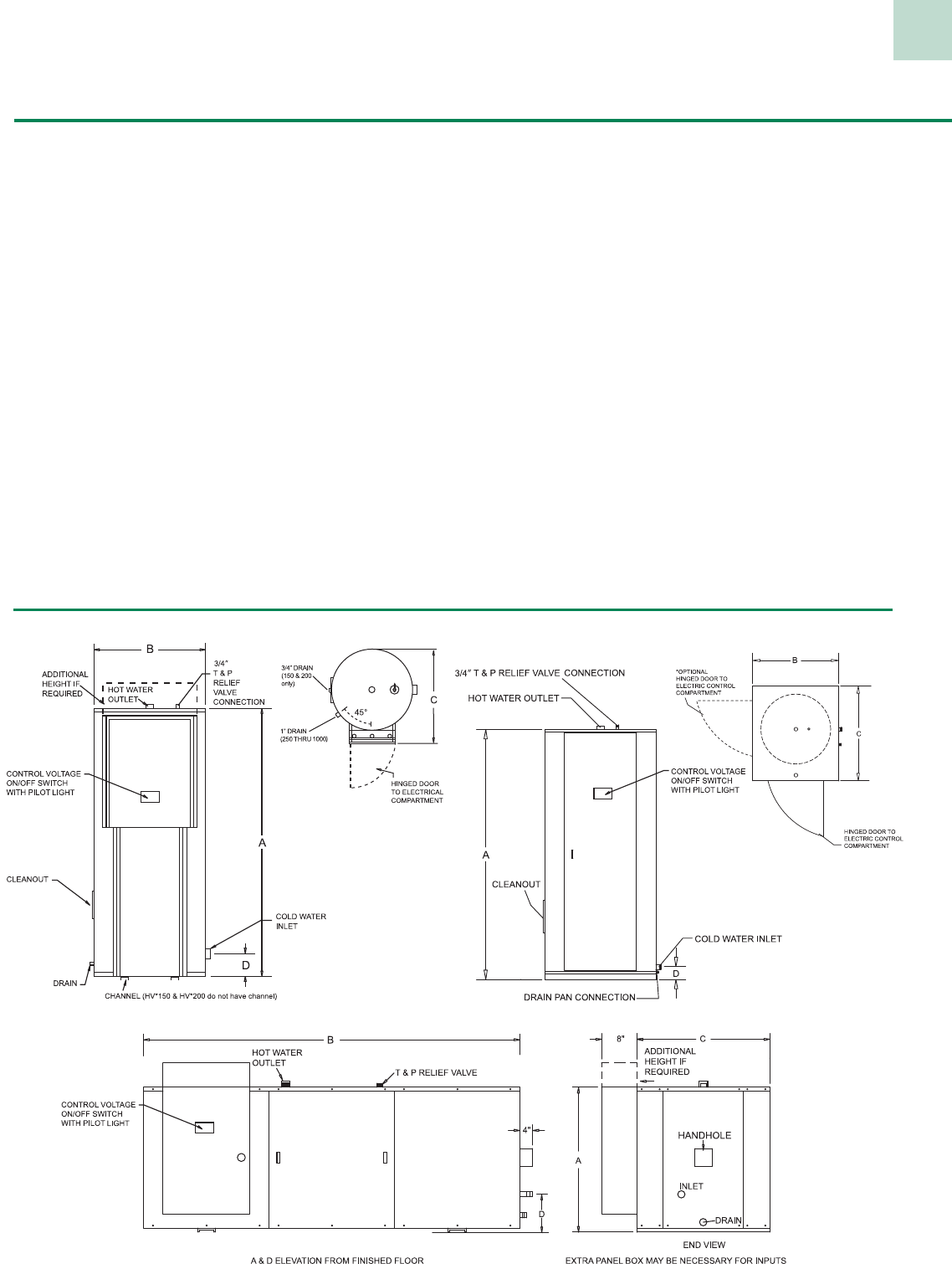 Note: Heater height is 28” on all models.