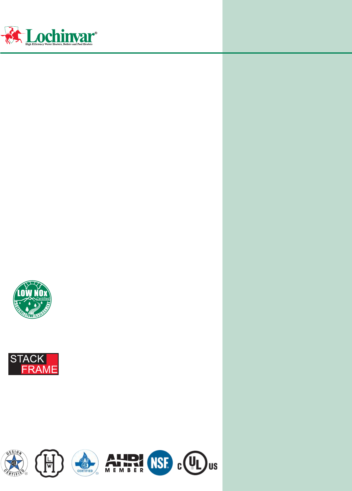 This catalog is designed to provide a convenient, condensed overview of the entire Lochinvar water heater line.