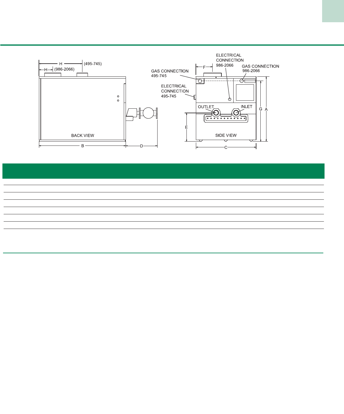Note: Heater Height is 33-1/4” (495-745) & 36” (986-2066)