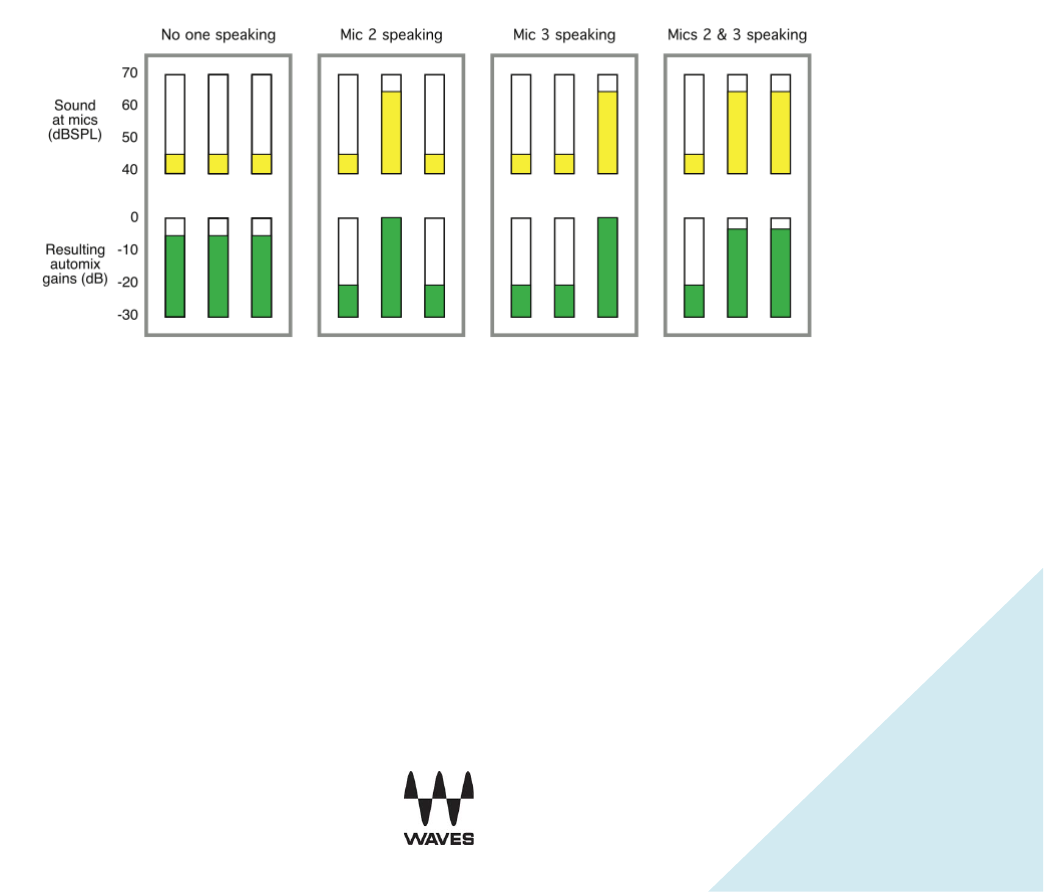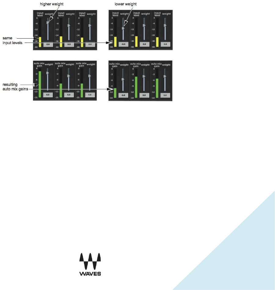 other channels’ automix gain to fall. With balanced weight settings, all microphones