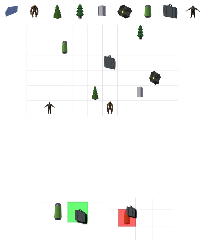 •czerwony - na danym polu nastepuje kolizja z innym przedmiotem, po upuszczeniu obiektu