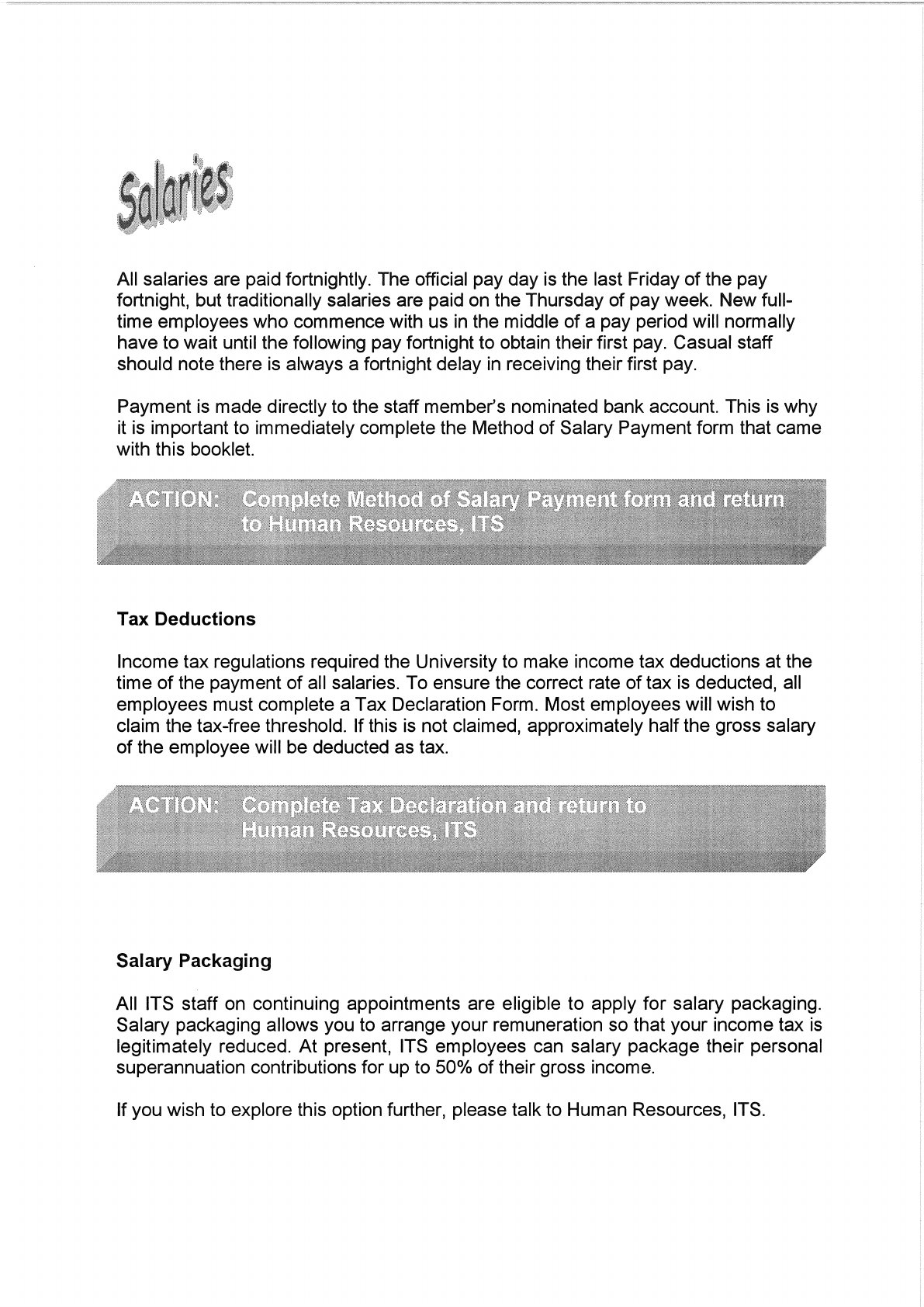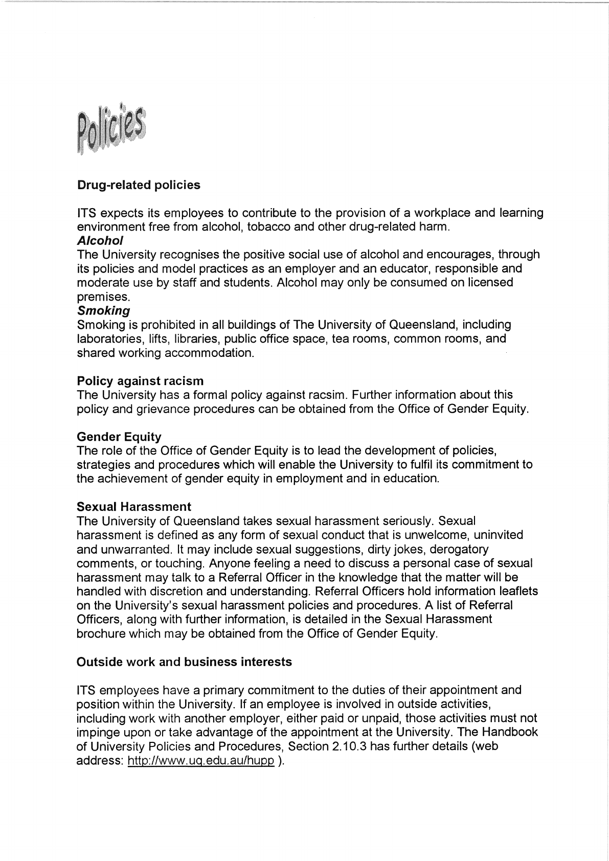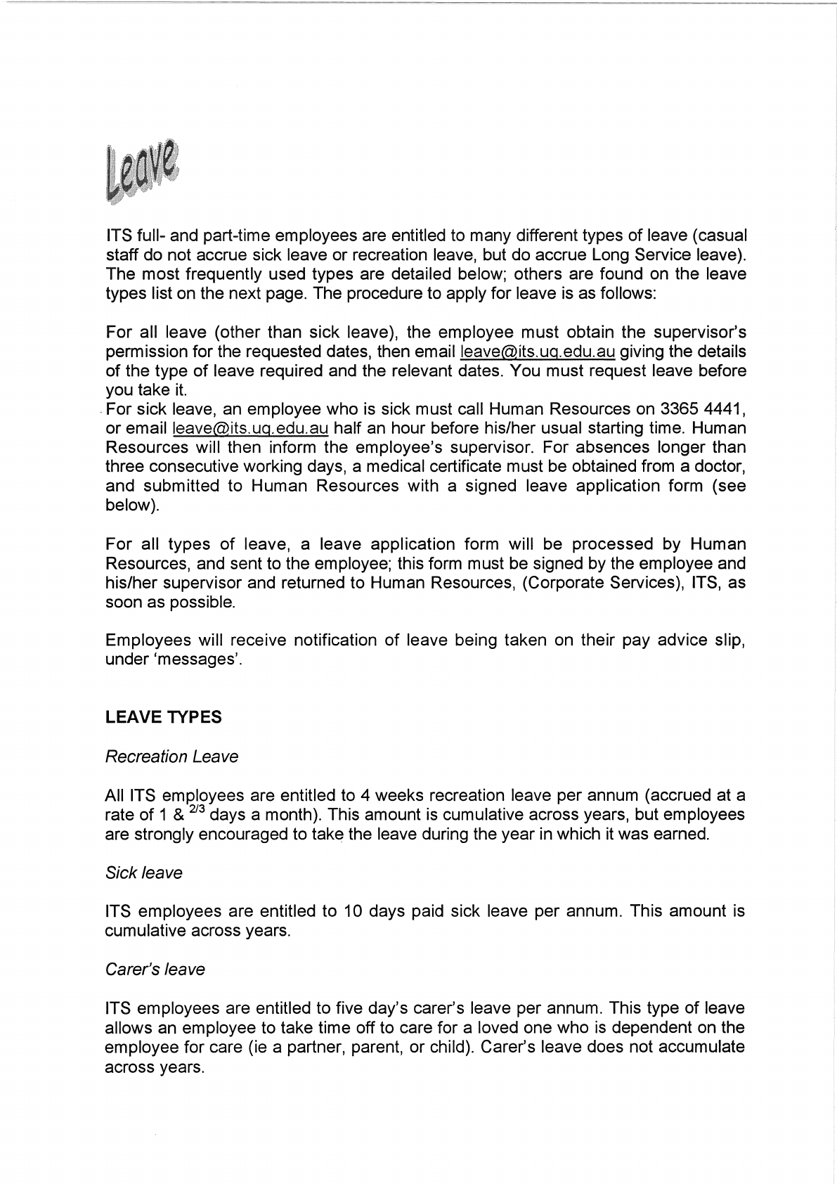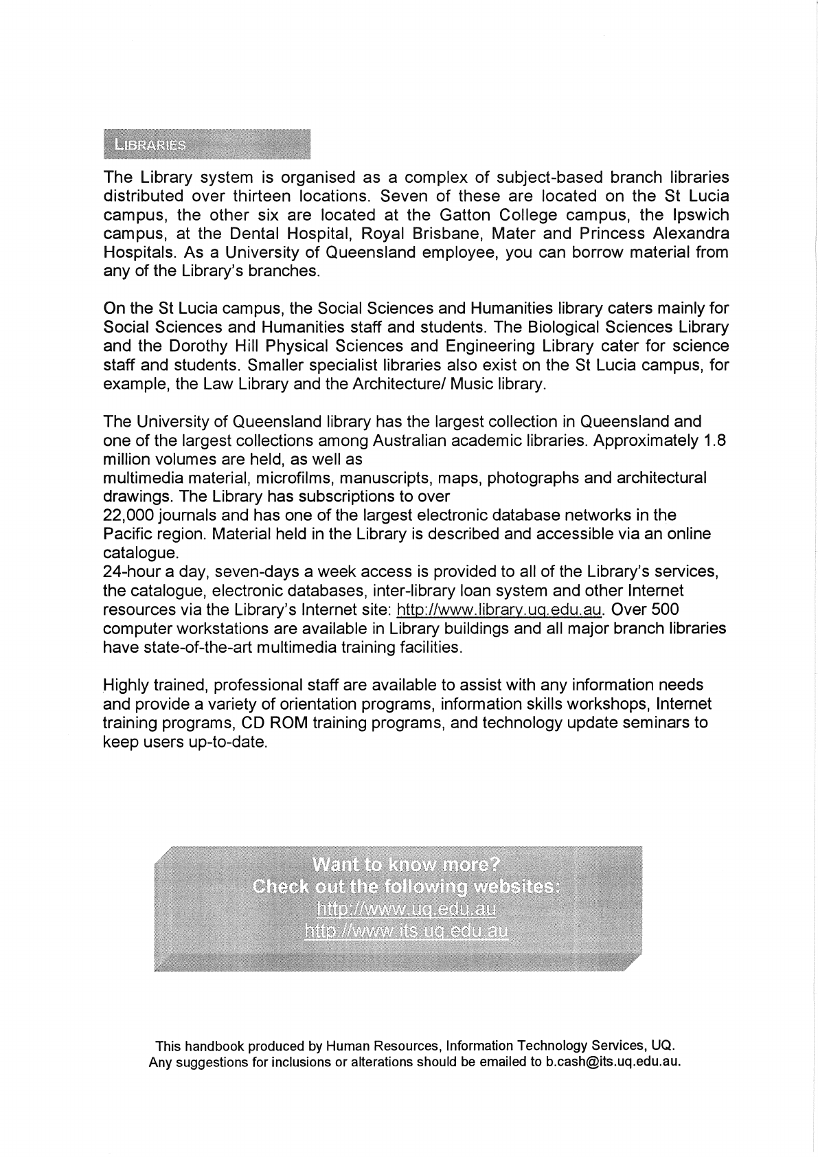 This handbook produced by Human Resources, Information Technology Services, UQ.