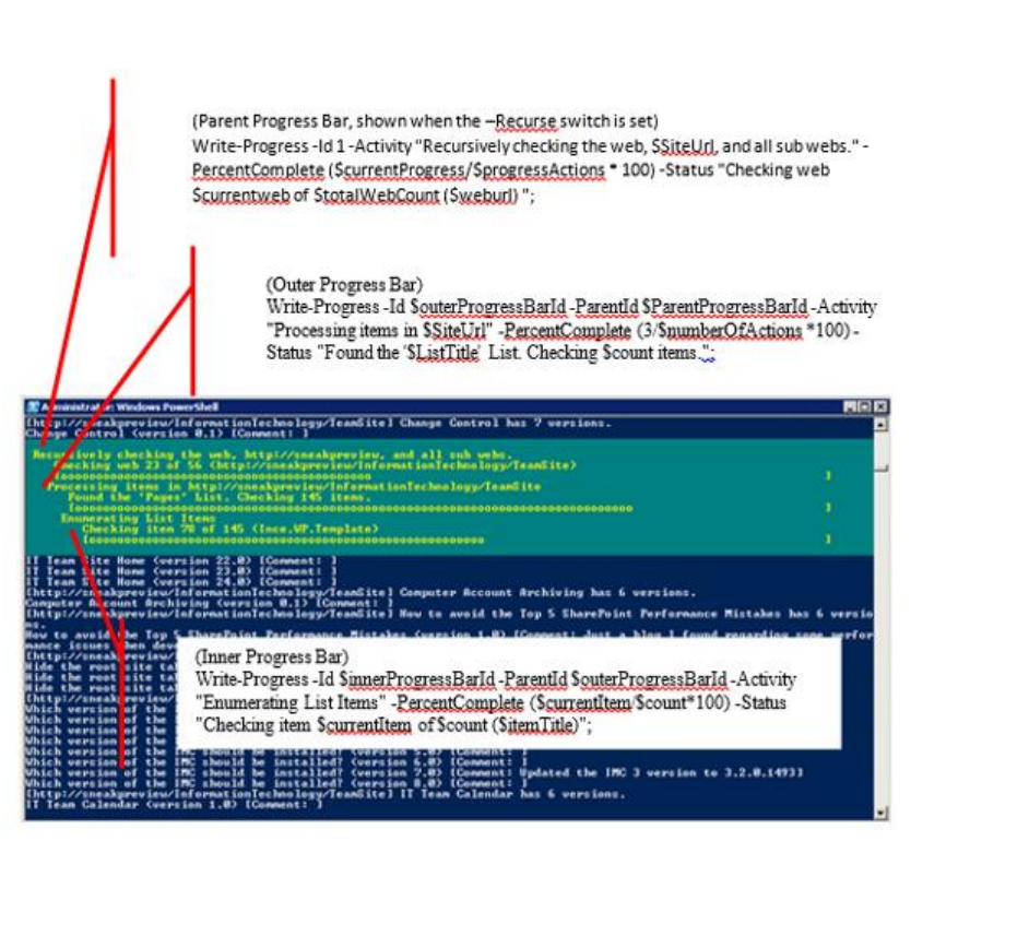 Site collections in the queue (Note the ShowInProgress / ShowCompleted / ShowFailed