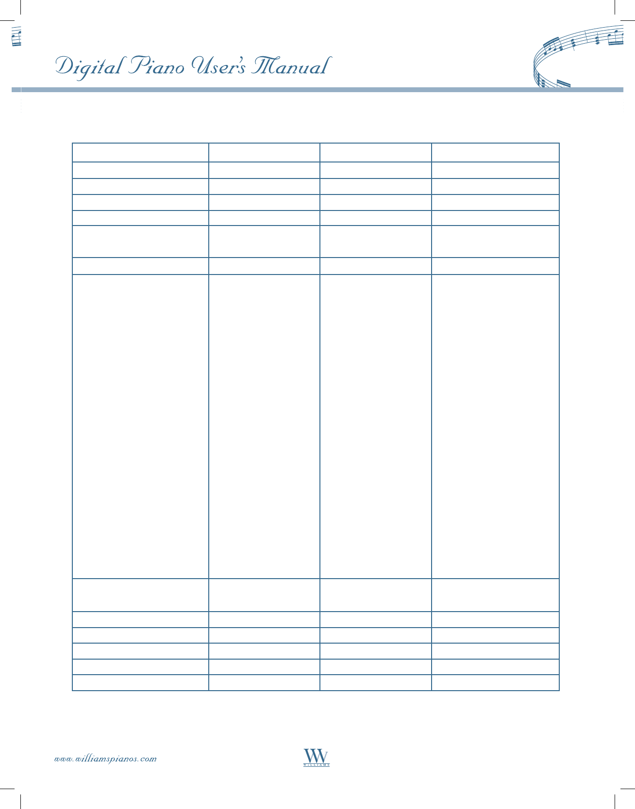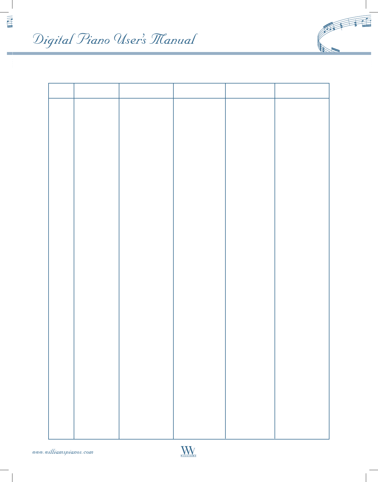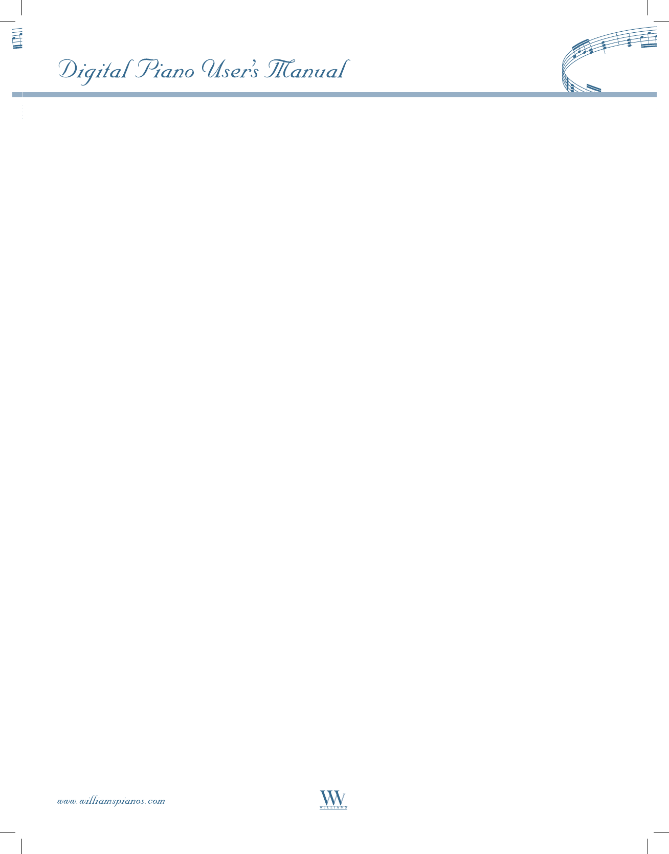 A copy of this warranty must be mailed to WILLIAMS within 10 days of receipt. Williams Pianos, P.O. Box 5111, Thousand Oaks, CA. 91359-5111
